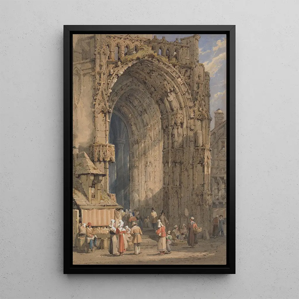 Samuel Prout, actif au XIXe siècle, est reconnu pour ses représentations de monuments historiques. Influencé par le mouvement romantique, il se spécialise dans la capture de l'architecture gothique, mettant en valeur la beauté des édifices religieux. Son travail reflète une époque où l'on redécouvrait le patrimoine architectural, en réaction aux bouleversements de la révolution industrielle. Prout a su immortaliser des sites emblématiques, tels que la cathédrale de Reims, en leur rendant hommage à travers son art. Son héritage perdure, inspirant des générations d'artistes et d'amateurs d'art.
