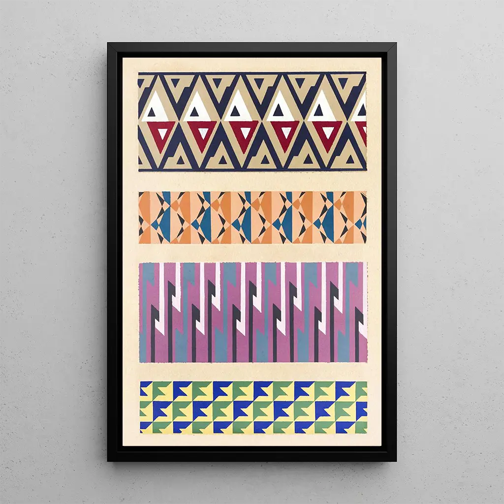 Druk artystyczny obrazu Portfolio de motifs abstraits Pl30 zaprasza do zanurzenia się w żywym świecie, gdzie kolory splatają się w harmonii. Kształty geometryczne, od płynnych po kanciaste, tworzą fascynującą dynamikę przyciągającą wzrok. Użyta technika, prawdopodobnie mieszanka farb akrylowych i kolażu, nadaje dziełu bogatą teksturę i fascynującą grę światła. Atmosfera emanująca z tej płótna jest jednocześnie energiczna i uspokajająca, oferując unikalne doświadczenie wizualne, które pobudza wyobraźnię i refleksję.