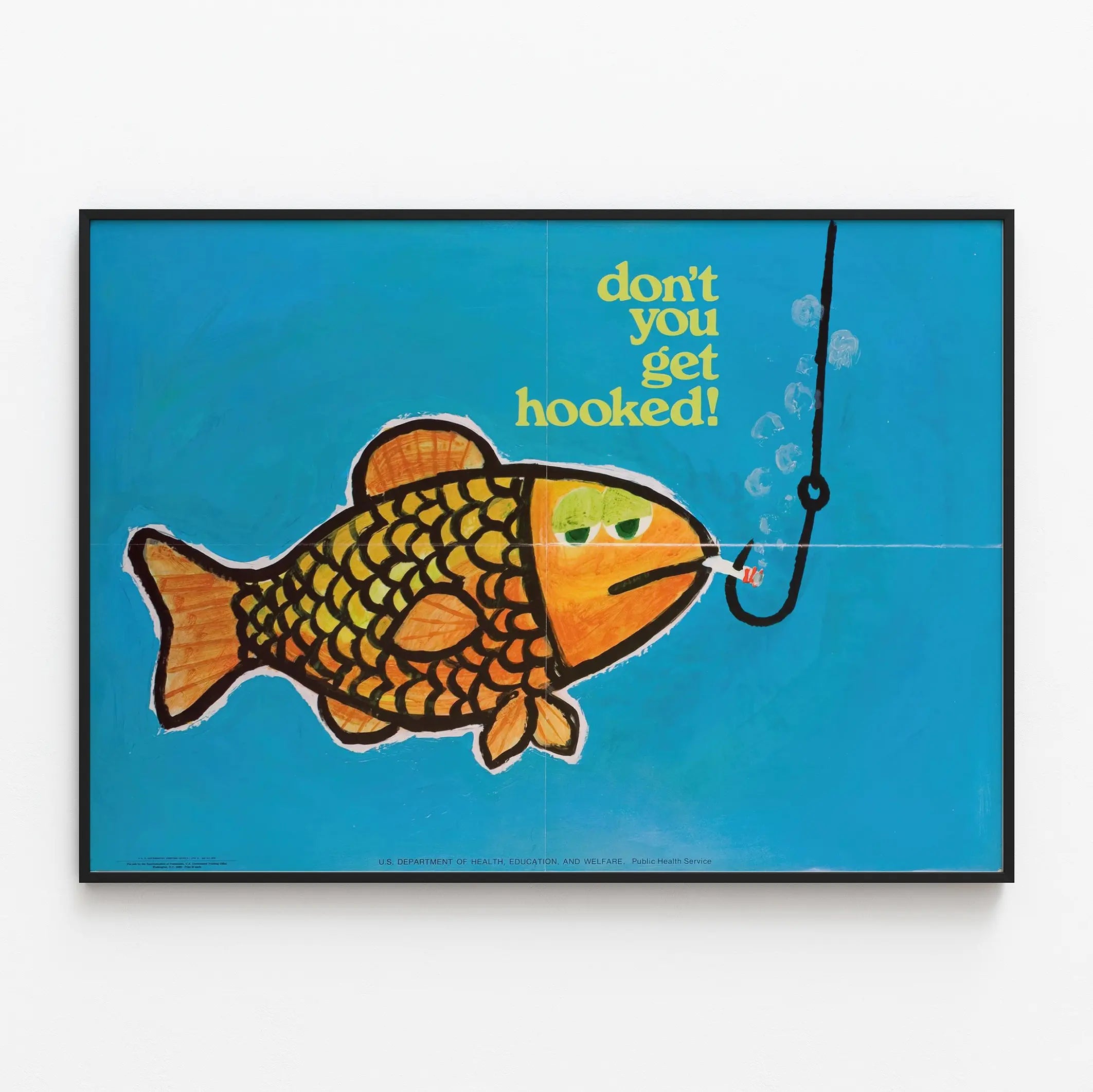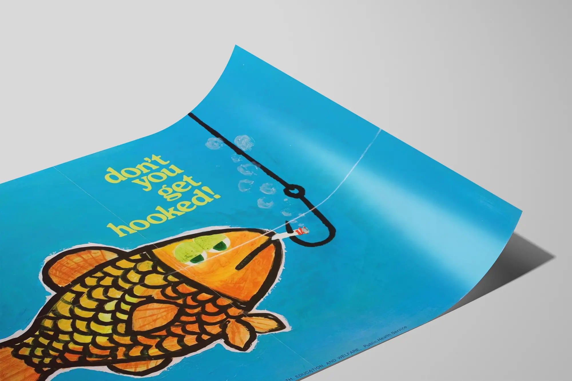 Plakat dekoracyjny z kolorową rybą, haczykiem i wiadomością