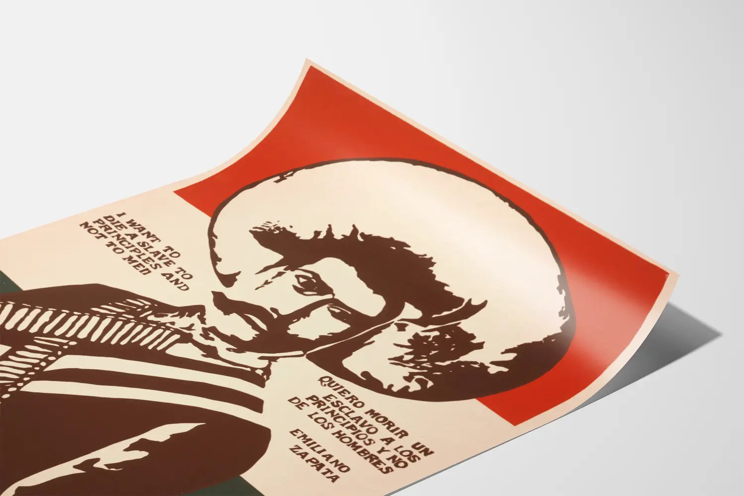 Plakat Emiliano Zapata z cytatem o zasadach i ludziach