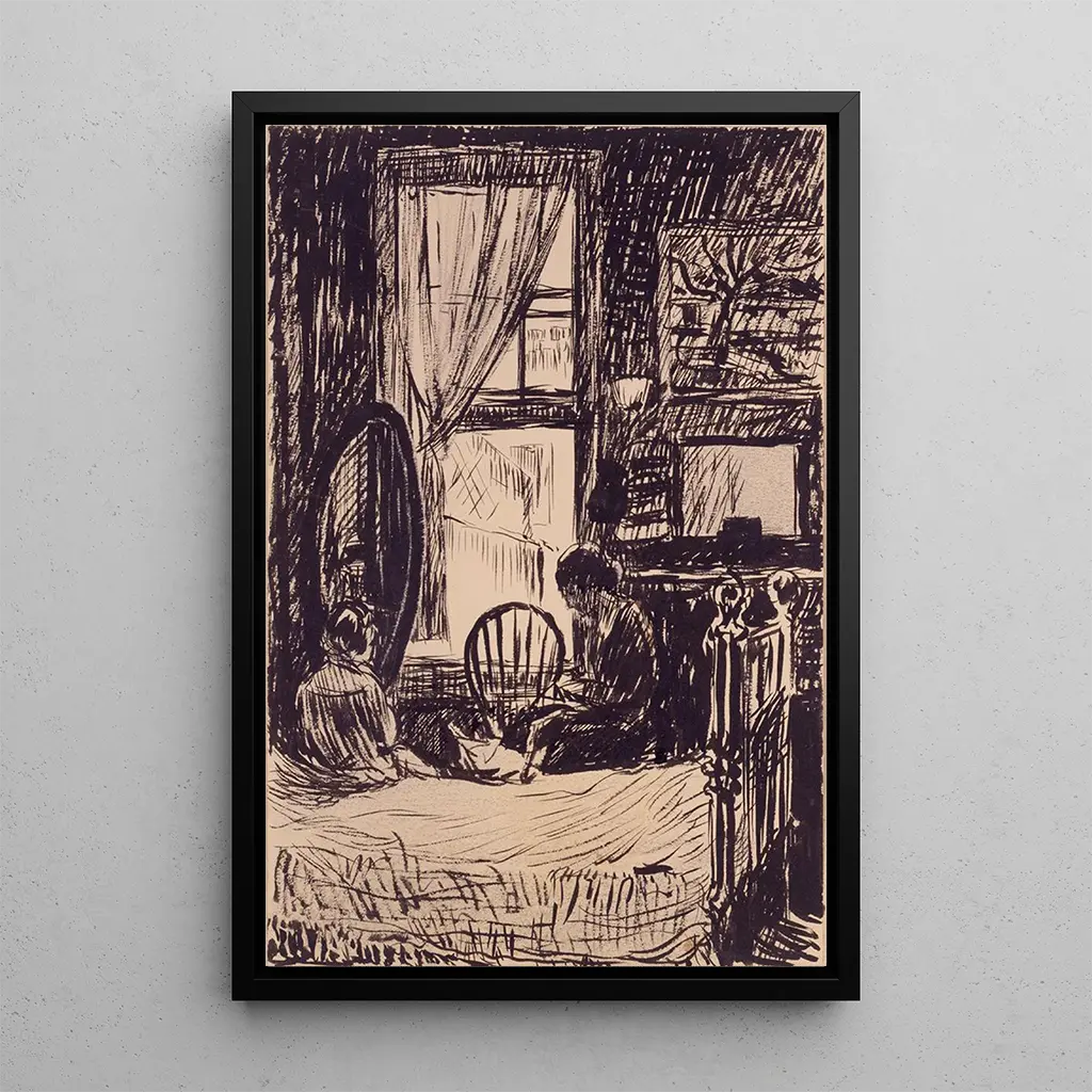 Druk artystyczny "Figury przed oknem" autorstwa Henry'ego Lymana Saena ukazuje ciepłą i przyjazną atmosferę. Postacie, ubrane elegancko, wydają się być pochłonięte żywą rozmową, podczas gdy naturalne światło wypełnia pokój przez okno. Delikatne kolory i pastelowe odcienie tworzą spokojną, niemal marzycielską atmosferę, która zachęca widza do zanurzenia się w tym momencie życia. Technika Saena, łącząca realizm i impresjonizm, nadaje tej płótnie głębię emocjonalną, sprawiając, że każdy szczegół jest żywy i namacalny.