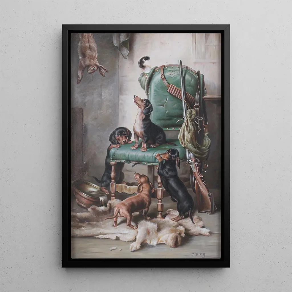 Dans "Hors de portée", Carl Reichert nous invite à observer une scène captivante où la tension entre l'animal et son environnement est palpable. La composition dynamique, accentuée par des couleurs vives et des contrastes saisissants, crée une atmosphère d'urgence et de mouvement. Les détails minutieux des animaux, ainsi que la représentation réaliste de leur habitat, témoignent du talent de l'artiste à capturer des moments fugaces de la vie sauvage. Cette reproduction nous plonge dans un monde où l'instinct animal est mis en avant, suscitant une réflexion sur la relation entre l'homme et la nature.