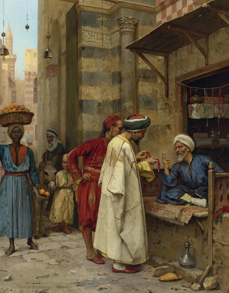 Reprodukcja Przewodzenie interesów w Kairze - Arthur von Ferraris – Fascynujące wprowadzenie W fascynującym świecie sztuki niektóre dzieła potrafią uchwycić istotę epoki i miejsca z taką intensywnością, że stają się otwartymi oknami na przeszłość. "Przewodzenie interesów w Kairze - Arthur von Ferraris" jest tego doskonałym przykładem, zanurzając nas w tętniącym życiem i pełnym energii Kairze, gdzie wymiana handlowa i interakcje międzyludzkie tworzą barwną i emocjonalną opowieść. To dzieło, zarówno narracyjne, jak i wizualne, zabiera widza w sensoryczną podróż do serca Egiptu, kraju pełnego historii i tajemnic. Poprzez ten obraz artysta zaprasza do zgłębienia dynamiki społecznej i kulturowej miasta w pełni rozkwitu, pozwalając odczuć namacalną energię jego ulic. Styl i wyjątkowość dzieła Styl Arthura von Ferraris wyróżnia się staranną dbałością o szczegóły i starannie dobraną paletą kolorów. W "Przewodzeniu interesów w Kairze" udaje mu się uchwycić nie tylko twarze postaci, ale także unikalną atmosferę miejsca. Gra światła i cienia, a także tekstury tkanin i materiałów, nadają scenie głębię i wyrazistość. Artysta stosuje techniki malarskie, które nawiązują zarówno do realizmu, jak i pewnej poezji, tworząc immersywną atmosferę. Każda postać wydaje się żywa, zaangażowana w transakcję lub rozmowę, a każda opowiada własną historię. Ten obraz nie jest tylko wizualnym przedstawieniem; to zaproszenie do zrozumienia subtelności relacji międzyludzkich i handlowych w kontekście historycznym pełnym bogactwa. Artysta i jego wpływ Arthur von Ferraris, urodzony w XIX wieku, jest artystą, którego prace wpisują się w ruch orientalisty, który przeżywał wielki rozkwit w tamtym okresie. Jego dzieło odzwierciedla fascynację kulturami egzotycznymi i odległymi pejzażami, często idealizowanymi przez pryzmat Zachodu. Ferraris, jako uważny obserwator, potrafił przekuć tę fascynację w żywe kompozycje, świadcząc o swojej umiejętności łączenia techniki i emocji. Jego wpływ wykracza poza własne kreacje, inspirując innych artystów do eksplorowania tematów Orientu i uchwycenia piękna różnorodnych kultur.