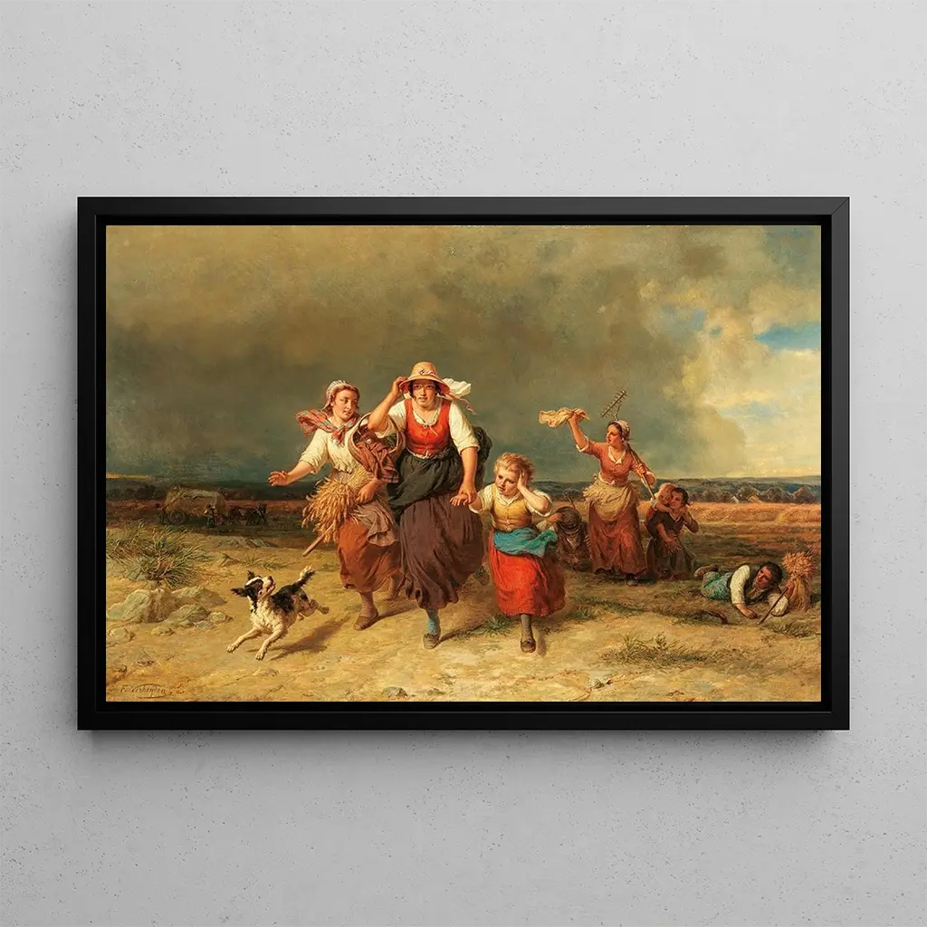 Avant la pluie : un moment de tension et de beauté "Avant la pluie" de François Verheyden capture un instant fugace, où la nature semble retenir son souffle avant l'arrivée d'une tempête. Les nuages sombres s'accumulent dans le ciel, tandis que la lumière du soleil lutte pour percer à travers les ombres menaçantes. La technique de Verheyden, qui utilise des coups de pinceau délicats pour représenter les reflets sur l'eau, crée une atmosphère à la fois dramatique et poétique. Les teintes de bleu et de gris dominent la composition, accentuant la tension palpable de ce moment avant l'orage, invitant le spectateur à ressentir l'imminence de la pluie. François Verheyden : un maître du paysage belge François Verheyden, actif au XIXe siècle, est reconnu pour ses paysages qui capturent la beauté fugace de la nature belge. Influencé par le réalisme et le romantisme, il a su traduire avec finesse les nuances de la lumière et de l'atmosphère dans ses œuvres. Verheyden a souvent peint des scènes de la campagne belge, mettant en avant la relation entre l'homme et son environnement. "Avant la pluie" est emblématique de son style, illustrant son talent pour évoquer des émotions à travers des paysages, tout en témoignant de l'importance de la nature dans l'art de son époque. Une acquisition décorative aux multiples atouts La reproduction de "Avant la pluie" est un ajout captivant à votre décoration intérieure, qu'il s'agisse d'un salon, d'un bureau ou d'une chambre. Son ambiance dramatique et ses couleurs nuancées apportent une touche d'élégance et de profondeur à tout espace. La qualité de la reproduction assure une fidélité à l'œuvre originale, permettant d'apprécier pleinement la maîtrise de Verheyden. En intégrant cette toile dans votre décor, vous créez un point focal qui suscite la conversation et invite à la contemplation, tout en enrichissant votre environnement de beauté artistique.