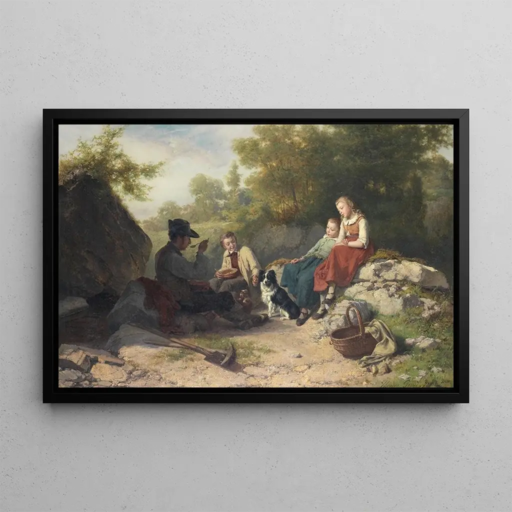 La pause de midi : un instant de sérénité figé dans le temps Dans La pause de midi, Théodore Gérard capture un moment de tranquillité au cœur de la vie quotidienne. Cette toile dépeint des travailleurs prenant une pause bien méritée, assis autour d'une table, savourant un repas simple. Les couleurs chaudes et terreuses, associées à une lumière douce, créent une atmosphère accueillante et apaisante. La composition est soigneusement équilibrée, mettant en avant les expressions des personnages, qui semblent s'abandonner à la convivialité de l'instant. La technique de Gérard, marquée par des détails minutieux et une attention particulière à la lumière, donne vie à cette scène intimiste, invitant le spectateur à partager ce moment de pause. Théodore Gérard : un témoin de la vie rurale du XIXe siècle Théodore Gérard, né en 1829 à Bruxelles, est un peintre belge dont l'œuvre se concentre sur la vie rurale et les scènes de genre. Influencé par le réalisme, il cherche à représenter la simplicité et l'authenticité de la vie quotidienne. Gérard évolue principalement au XIXe siècle, une période marquée par des changements sociaux et économiques en Europe. Son travail témoigne d'une profonde empathie pour les classes laborieuses, et il parvient à immortaliser des moments de bonheur simple. Grâce à son talent, il contribue à l'évolution de la peinture de genre, en mettant en lumière des scènes souvent négligées par ses contemporains. Une acquisition décorative aux multiples atouts Choisir une reproduction de La pause de midi, c'est enrichir votre espace de vie d'une œuvre empreinte de chaleur et de convivialité. Ce tableau s'intègre parfaitement dans un salon, une salle à manger ou même un bureau, apportant une touche d'humanité et de sérénité à votre décoration. La qualité de la reproduction garantit une fidélité aux couleurs et aux détails de l'œuvre originale, permettant de profiter pleinement de l'atmosphère paisible créée par Gérard. Avec son attrait esthétique, cette toile devient un élément central de votre décoration, suscitant des conversations et des émotions chez vos invités.