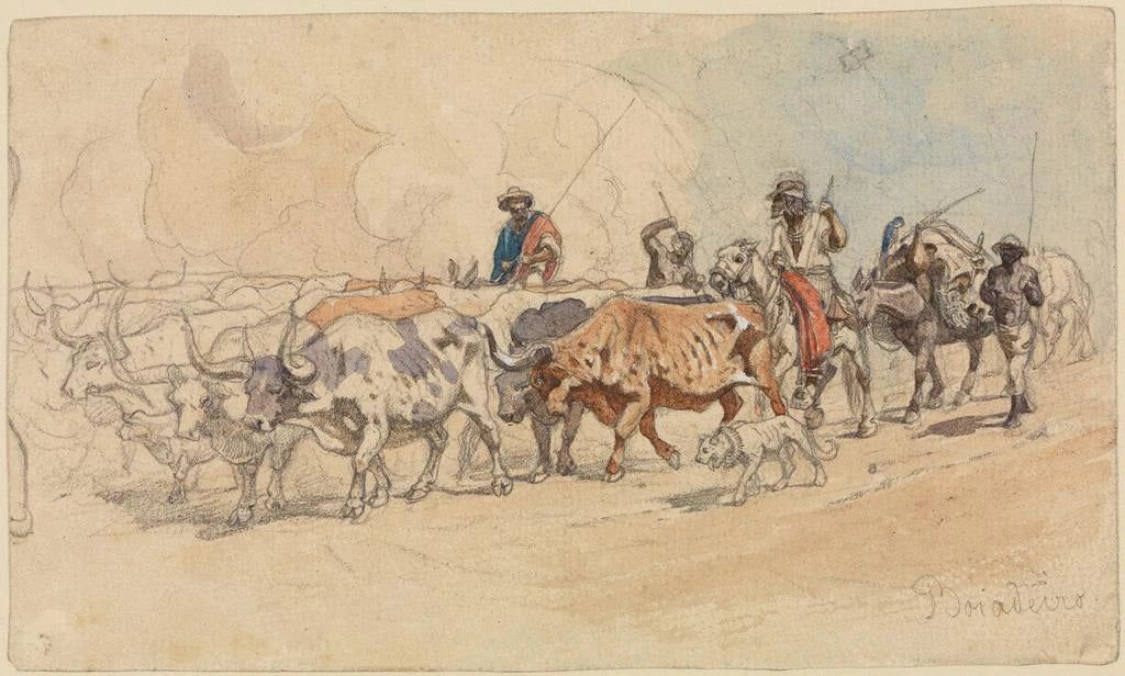 Kierowcy na mułach z stadem bawołów - Ferdinand Keller
