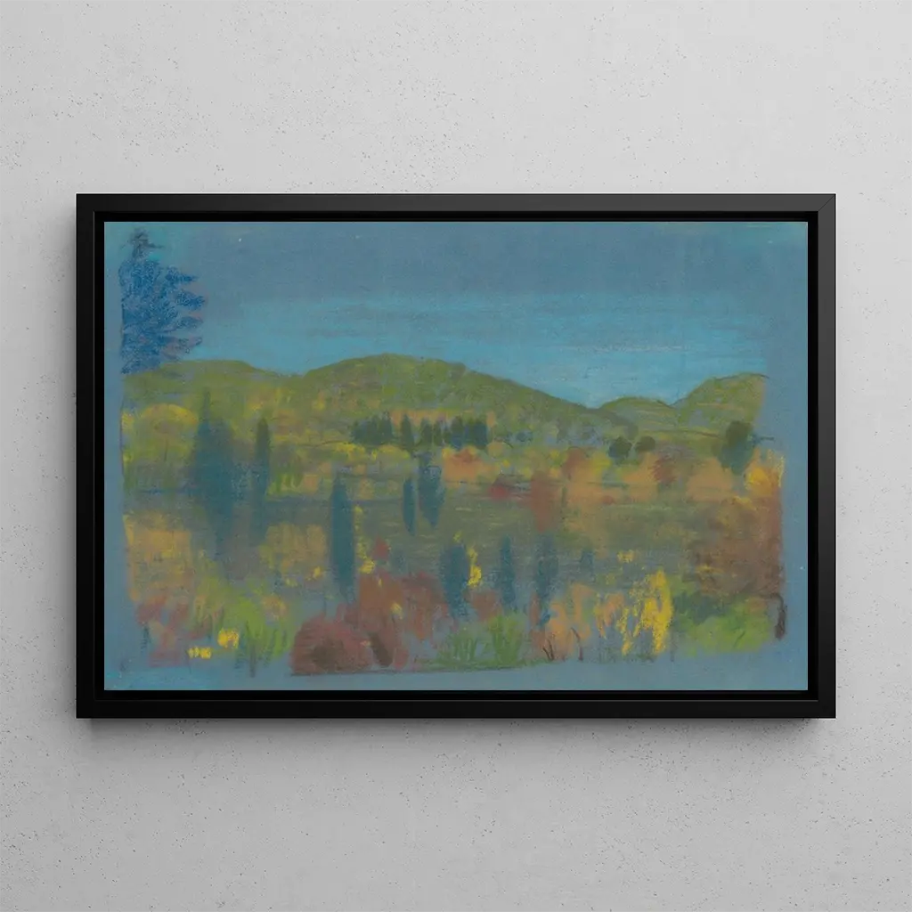 Arthur Bowen Davies, aktywny pod koniec XIX i na początku XX wieku, jest często uważany za prekursora amerykańskiego symbolizmu. Pod wpływem europejskich ruchów, potrafił wprowadzić do swojego dzieła elementy mistyczne i poetyckie. Jego pejzaże, takie jak ten, odzwierciedlają dążenie do transcendencji i harmonii z naturą. Davies był aktywnym członkiem sceny artystycznej Nowego Jorku, uczestnicząc w ważnych wystawach i wpływając na wielu współczesnych artystów. Jego zdolność do uchwycenia emocji poprzez sugestywne pejzaże pozostawiła trwały ślad w historii sztuki.