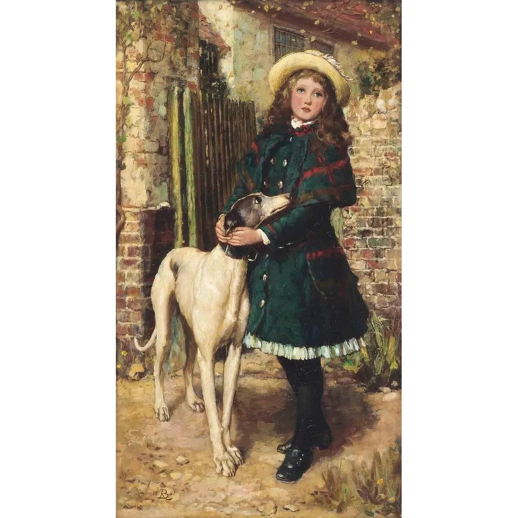 Briton Rivière, brytyjski artysta XIX wieku, jest ceniony za swoje dzieła ukazujące piękno natury i codzienne życie. Pod wpływem ruchu prerafaelitów rozwija styl łączący precyzję techniczną i poetycką wrażliwość. Rivière jest również znany z przedstawień zwierząt, ale "Na drzwiach ogrodu" ilustruje jego talent do ukazywania scen ludzkich w harmonii z otoczeniem. Jego prace wpisują się w epokę, w której sztuka dążyła do ponownego odkrycia piękna świata naturalnego, odpowiadając jednocześnie na społeczne troski tamtych czasów. Dzieło Rivière pozostaje cennym świadectwem estetyki wiktoriańskiej.