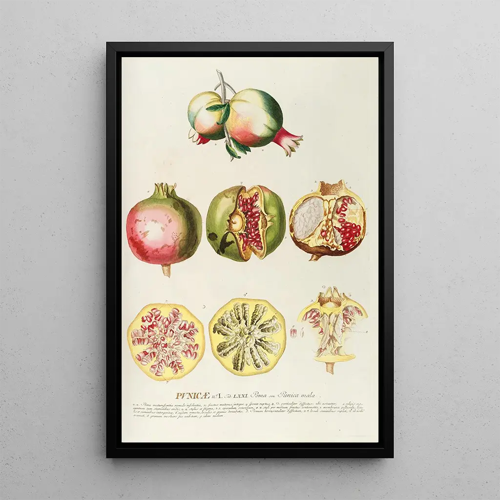 Druk artystyczny obrazu Punicae to idealny wybór do ozdoby wnętrza, niezależnie od tego, czy to salon, biuro czy sypialnia. Jakość druku gwarantuje wierne odwzorowanie kolorów i szczegółów oryginalnego dzieła, dodając elegancji i wyrafinowania Twojej dekoracji. To płótno przyciąga wzrok i wywołuje rozmowy, jednocześnie nawiązując do naturalnego piękna. Wybierając tę reprodukcję, decydujesz się na element dekoracyjny, który wzbogaca Twoją przestrzeń życiową, jednocześnie celebrując sztukę botaniczną.