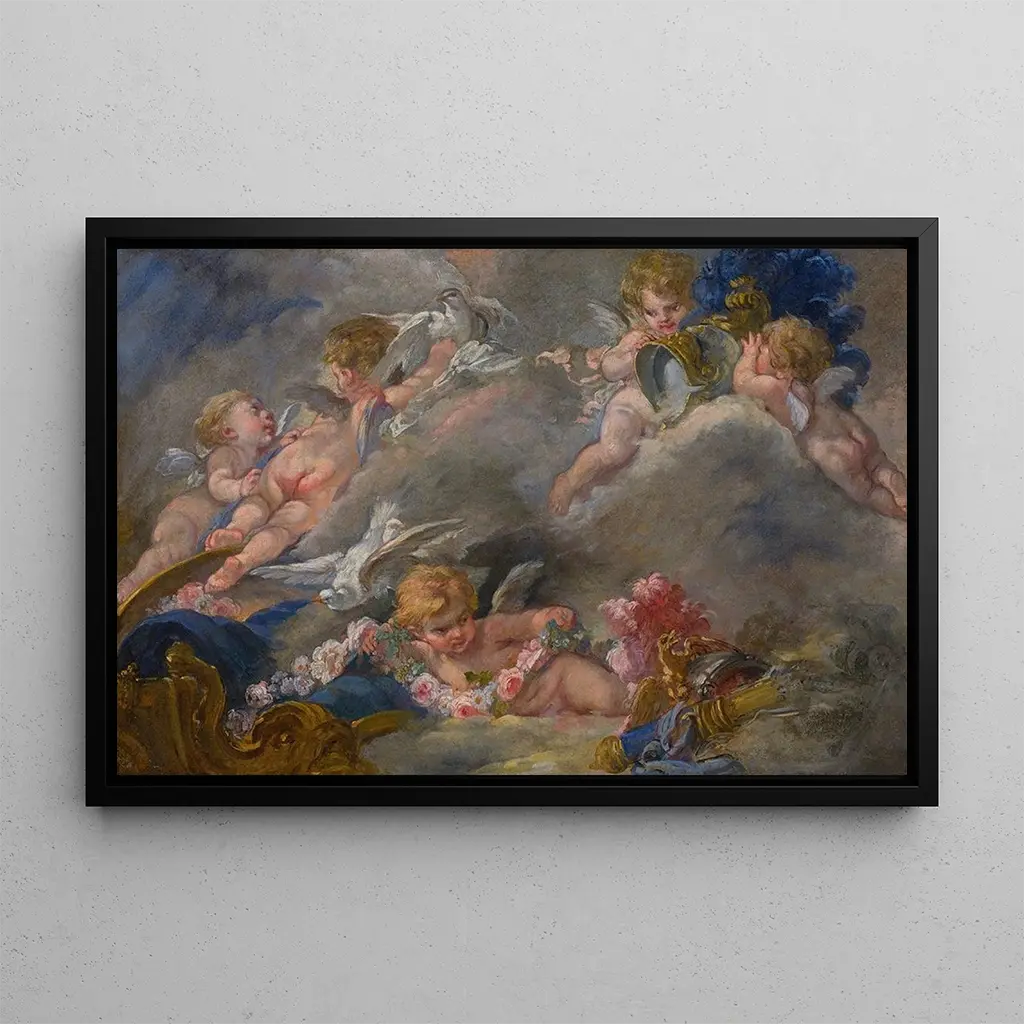 La reproduction du tableau Putti s'avère être un choix décoratif judicieux pour divers espaces de vie. Que ce soit dans un salon, une chambre ou un bureau, cette toile apporte une touche de légèreté et de sophistication. Sa qualité d'impression garantit une fidélité des couleurs et des détails, permettant de profiter pleinement de l'œuvre originale. L'attrait esthétique de cette reproduction réside dans sa capacité à créer une ambiance apaisante et inspirante, tout en ajoutant une note artistique à votre intérieur. Offrant une belle harmonie avec des meubles classiques ou contemporains, cette toile saura séduire les amateurs d'art comme les néophytes.