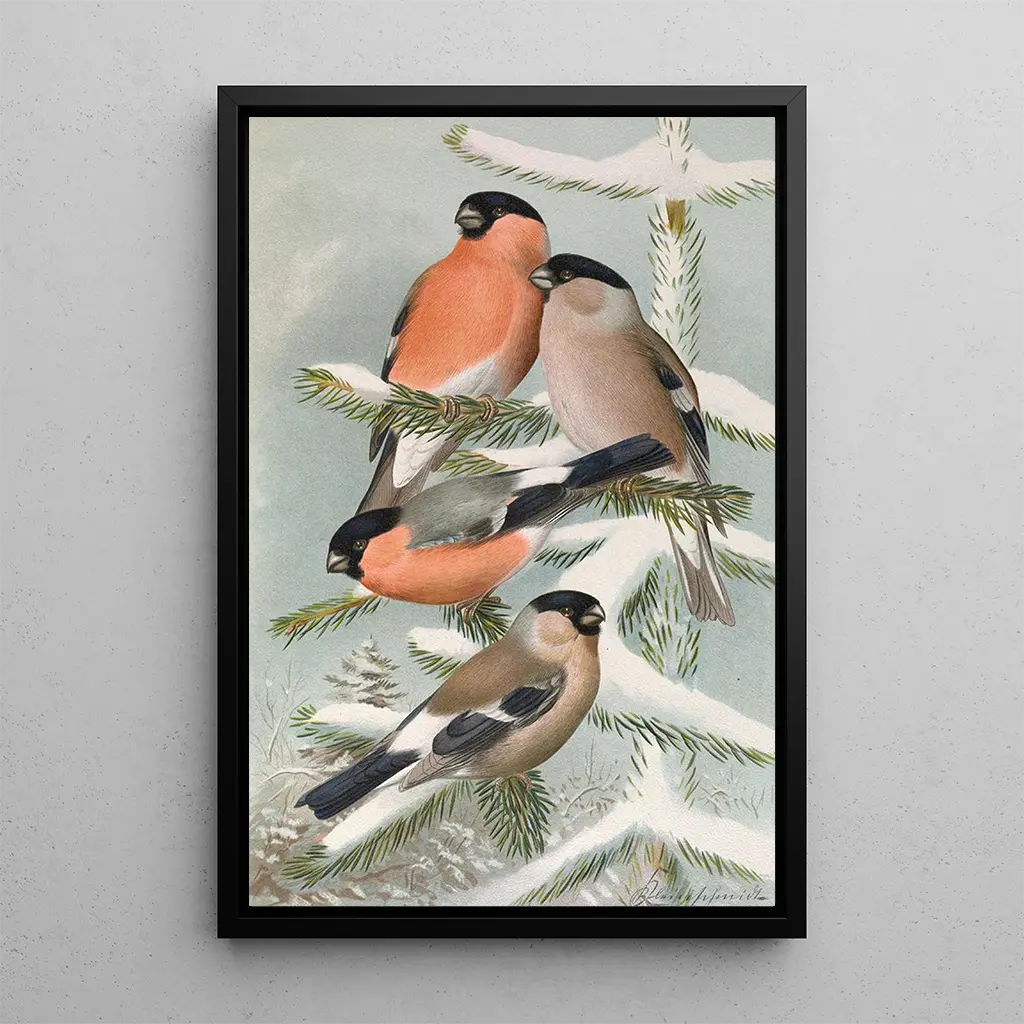 Druk artystyczny Pyrrhula pyrrhula, znany również jako gros-bec, przywołuje delikatne piękno tego ptaka. Ze swoimi żywymi kolorami, zwłaszcza jaskrawą czerwienią upierzenia, to dzieło przyciąga wzrok i zachęca do zachwytu. Johann Friedrich Naumann, dzięki swojej precyzyjnej technice i dbałości o szczegóły, potrafi uchwycić istotę tego ptaka. Atmosfera obrazu jest pełna spokoju, jakby można było usłyszeć melodyjny śpiew natury. Każdy pociągnięcie pędzla zdaje się tętnić życiem, oddając hołd ptasiej wspaniałości.