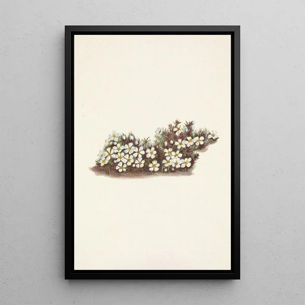 Druk artystyczny Pyxidanthera barbulata przenosi nas w świat delikatności i spokoju. To płótno, bogate w szczegóły, podkreśla ikoniczną roślinę za pomocą palety łagodnych kolorów, od delikatnej zieleni po odcienie jasnego bieli. Technika akwareli używana przez Mary Vaux Walcott nadaje dziełu lekkość i niemal eteryczną atmosferę. Atmosfera emanująca z tego dzieła zachęca do kontemplacji, pozwalając docenić precyzję linii i finezję tekstur. Każdy płatek zdaje się ożywać, a cała kompozycja wyraża harmonijną równowagę między naturą a sztuką.