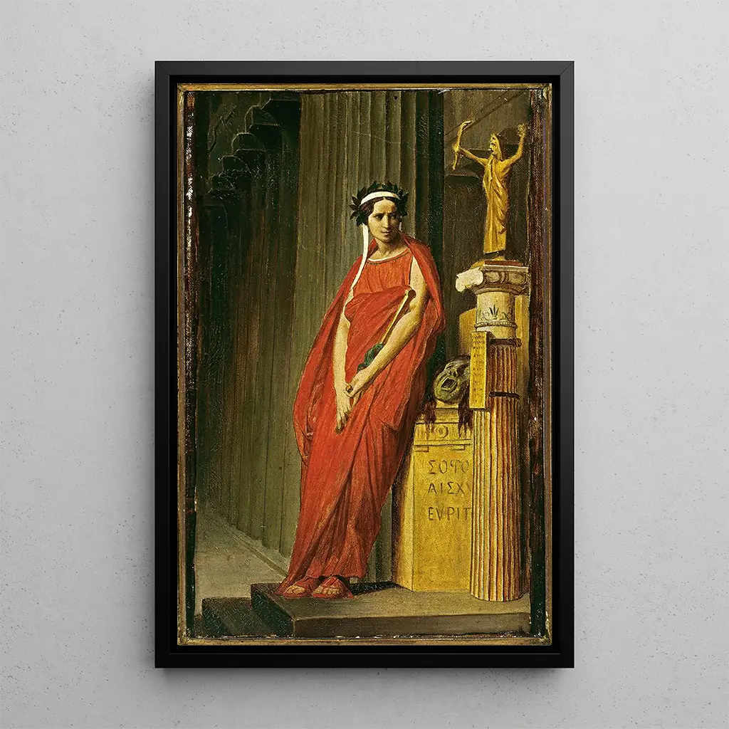 "Rachel", ikoniczna druk artystyczny Jean-Léona Gérôme'a, przedstawia kobiecą postać o uderzającej urodzie, przepełnioną wyczuwalną melancholią. Kompozycja podkreśla wyrazistą twarz modelki, otoczoną ciemnymi draperiami, które kontrastują ze światłem oświetlającym jej twarz. Kolory, głównie odcienie niebieskiego i czerwonego, tworzą atmosferę zarówno dramatyczną, jak i poetycką. Gérôme, dzięki swojej precyzyjnej technice, potrafi uchwycić istotę ludzkich emocji, czyniąc ten druk artystyczny nie tylko portretem, ale także eksploracją głębokich uczuć i kondycji ludzkiej.