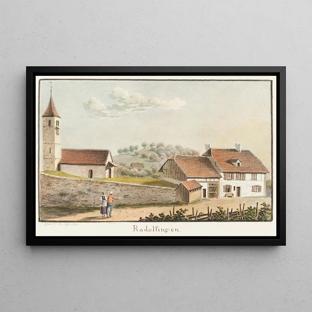 Radelfingen : spojrzenie na szwajcarskie życie wiejskie Druk artystyczny "Radelfingen" przenosi nas w szwajcarski krajobraz wiejski, gdzie natura i architektura harmonijnie się spotykają. Kolory ziemiste i odcienie zieleni oddają bogactwo wiejskiego życia, podczas gdy szczegółowe detale budynków dodają scenie wymiaru historycznego. Jakob Samuel Weibel, dzięki swojemu realistycznemu stylowi, potrafi uchwycić istotę codziennego życia w tej wiosce, oddając hołd pięknu szwajcarskich krajobrazów. Spokojna atmosfera emanująca z tego obrazu zachęca do marzeń i ucieczki. Jakob Samuel Weibel : świadek swojego czasu Jakob Samuel Weibel, aktywny w XIX wieku, jest szwajcarskim artystą, którego dzieła odzwierciedlają życie wiejskie jego epoki. Pod wpływem realizmu, umiał precyzyjnie przedstawiać krajobrazy i sceny codziennego życia. Jego obrazy świadczą o głębokim szacunku dla natury i lokalnej kultury, czyniąc go ważnym przedstawicielem szwajcarskiej sztuki. Chociaż mniej znany niż niektórzy jego współcześni, Weibel pozostawił znaczący ślad w sztuce regionalnej, uchwycając chwile prostoty i piękna. Dekoracyjny nabytek o wielu zaletach Druk artystyczny "Radelfingen" to element dekoracyjny, który wzbogaci Twoje wnętrze swoim wiejskim urokiem. Idealny do salonu, biura lub sypialni, ten obraz wnosi do przestrzeni odrobinę autentyczności i spokoju. Jakość reprodukcji zapewnia wierne oddanie szczegółów i kolorów oryginalnego dzieła, jednocześnie oferując niezaprzeczalną estetykę. Wybierając to dzieło, decydujesz się na dekorację, która odzwierciedla piękno szwajcarskich krajobrazów, tworząc ciepłą i przyjazną atmosferę w Twoim domu.