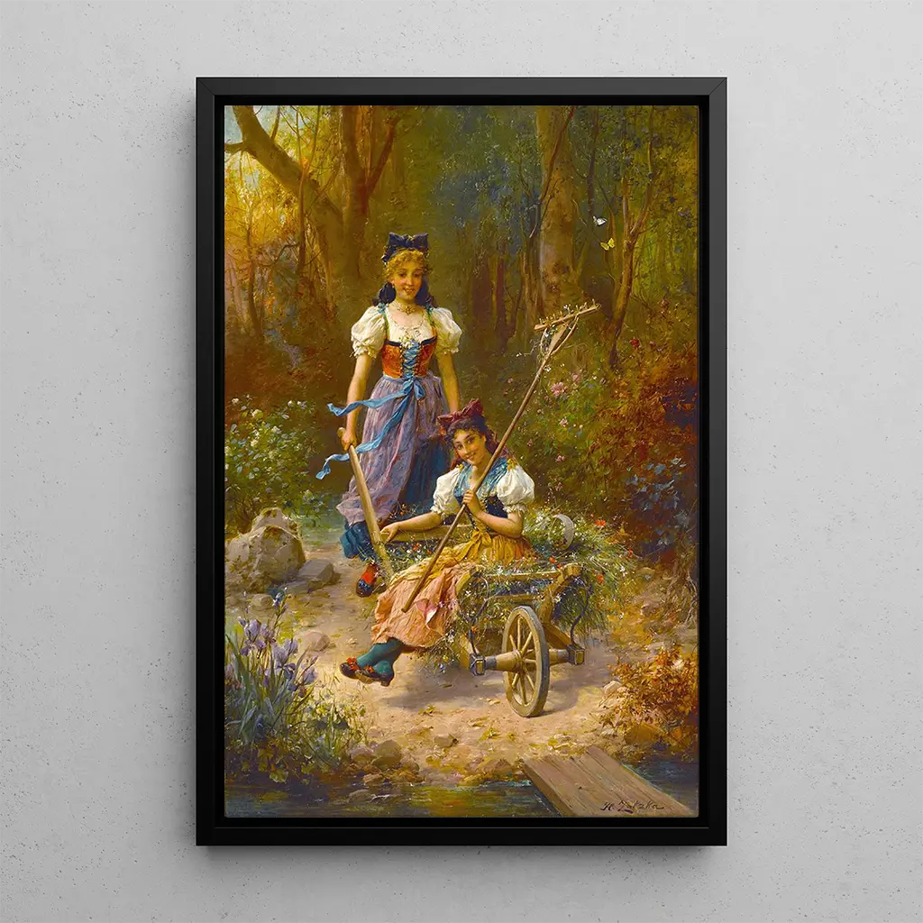 Hans Zatzka, aktywny pod koniec XIX i na początku XX wieku, jest austriackim artystą, którego styl charakteryzuje się delikatnym romantyzmem i wrażliwością na piękno natury. Pod wpływem ruchu symbolistycznego, Zatzka potrafił uchwycić chwile szczęścia i lekkości w swoich dziełach. Jego kariera, naznaczona nieustannym dążeniem do harmonii, uczyniła go ikoną wiedeńskiej sztuki. Jego obrazy, często zamieszkiwane przez idealizowane postacie, świadczą o epoce, w której sztuka była postrzegana jako sposób ucieczki od zgiełku nowoczesnego życia.