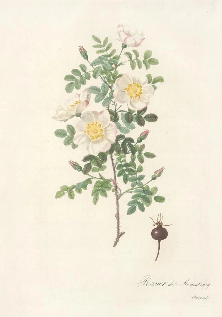 Obraz Rosa Pimpinellifolia Mariaeburgensis - Pierre Joseph Redouté | Druk artystyczny