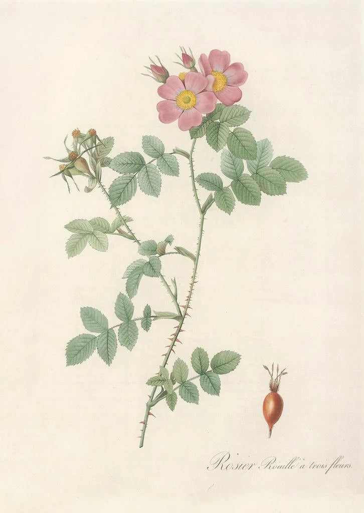 Obraz Rosa Rubiginosa Triflora - Pierre Joseph Redouté | Druk artystyczny