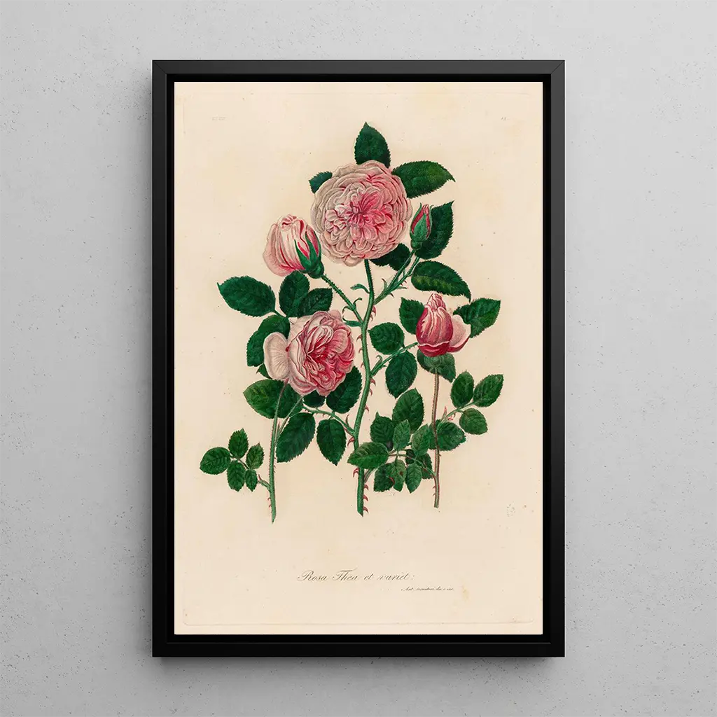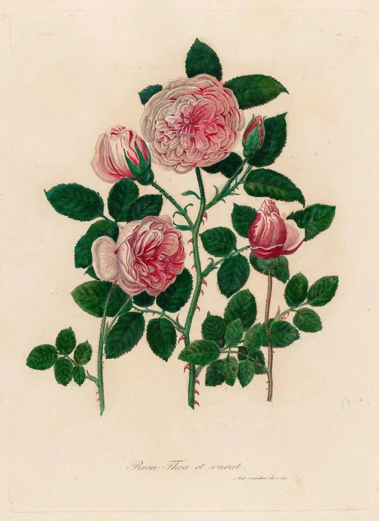 La druk artystyczny de Rosa thea et variet nous transporte dans un jardin luxuriant où les couleurs s’épanouissent avec éclat. Les teintes vives de rose, de jaune et de vert s’entremêlent pour créer une composition florale dynamique et joyeuse. La technique de peinture utilisée par Savi permet de saisir la lumière et les ombres, donnant ainsi une profondeur à chaque fleur. Cette œuvre est une véritable célébration de la nature, invitant le spectateur à savourer la beauté éphémère des fleurs, tout en évoquant une sensation de joie et de vitalité.
