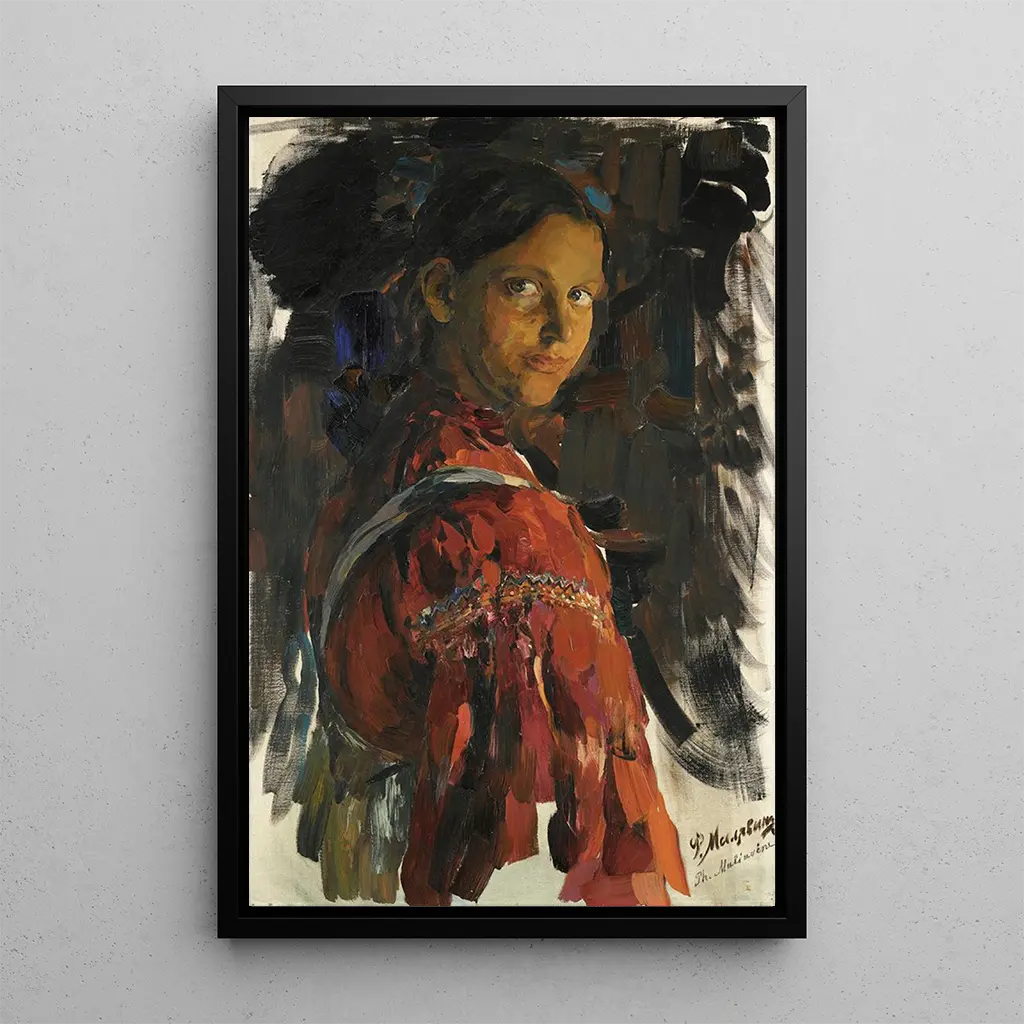 "Rosyjska piękność" Filippa Malyavina to dzieło, które celebruje grację i godność rosyjskich kobiet. Obraz przedstawia postać kobiecą o przenikliwym spojrzeniu, otuloną kolorowymi draperiami, które nawiązują zarówno do tradycji, jak i nowoczesności. Żywe odcienie i bogate tekstury tworzą ciepłą, niemal hipnotyzującą atmosferę. Malyavin, dzięki swojej biegłości w technice olejnej, potrafi przekazać namacalną emocję poprzez twarz modelki, zapraszając widza do zanurzenia się w świat piękna i tajemnicy.