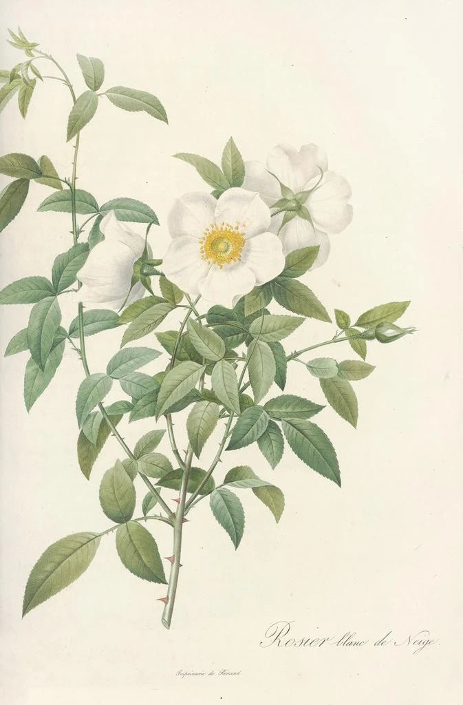 Pierre Joseph Redouté, actif au XVIIIe siècle, est reconnu comme l’un des plus grands illustrateurs botaniques de son temps. Son parcours, marqué par une formation rigoureuse et une passion pour la nature, l’a conduit à devenir le peintre officiel de la cour française. Influencé par le mouvement naturaliste, Redouté a su capturer la beauté des fleurs avec une précision inégalée, faisant de ses œuvres de véritables références dans le domaine de l’illustration botanique. Rosa Nivea, comme beaucoup de ses créations, témoigne de son talent exceptionnel et de son dévouement à l’art floral, un héritage qui continue d’inspirer les générations futures.