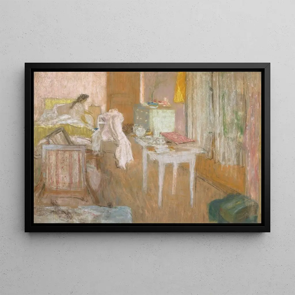 Édouard Vuillard, członek grupy Nabis, zaznaczył koniec XIX wieku i początek XX wieku swoim unikalnym stylem, łącząc impresjonizm i symbolizm. Pod wpływem artystów takich jak Pierre Bonnard i Paul Sérusier, Vuillard skupił się na przedstawianiu codziennego życia i wnętrz, uchwycając światło i atmosferę z niezwykłą wrażliwością. Jego prace, często skoncentrowane na tematach domowych, przyczyniły się do redefinicji malarstwa gatunkowego, nadając mu trwałe znaczenie w historii sztuki. La chambre rose jest doskonałym przykładem jego podejścia, w którym intymność i piękno codzienności są wywyższone.