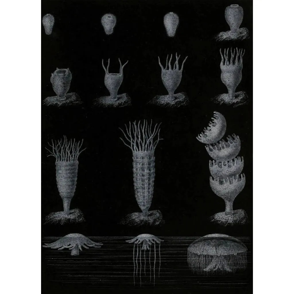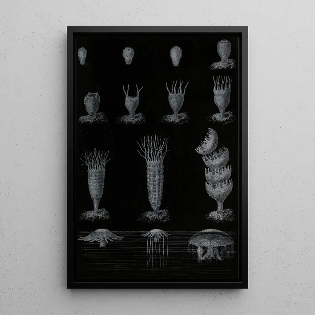 Reprodukcja rozwój meduzy to element dekoracyjny, który wzbogaci Twoje wnętrze, niezależnie czy w salonie, biurze czy sypialni. Jakość druku zapewnia niezwykłą wierną reprodukcję kolorów i szczegółów oryginalnego dzieła, dodając elegancji i spokoju Twojej przestrzeni. To dzieło, z jego niezaprzeczalnym walorem estetycznym, zachęca do marzeń i kontemplacji, czyniąc z każdego spojrzenia chwilę odkrywania. Podaruj sobie tę reprodukcję i pozwól się porwać pięknu głębin morskich.