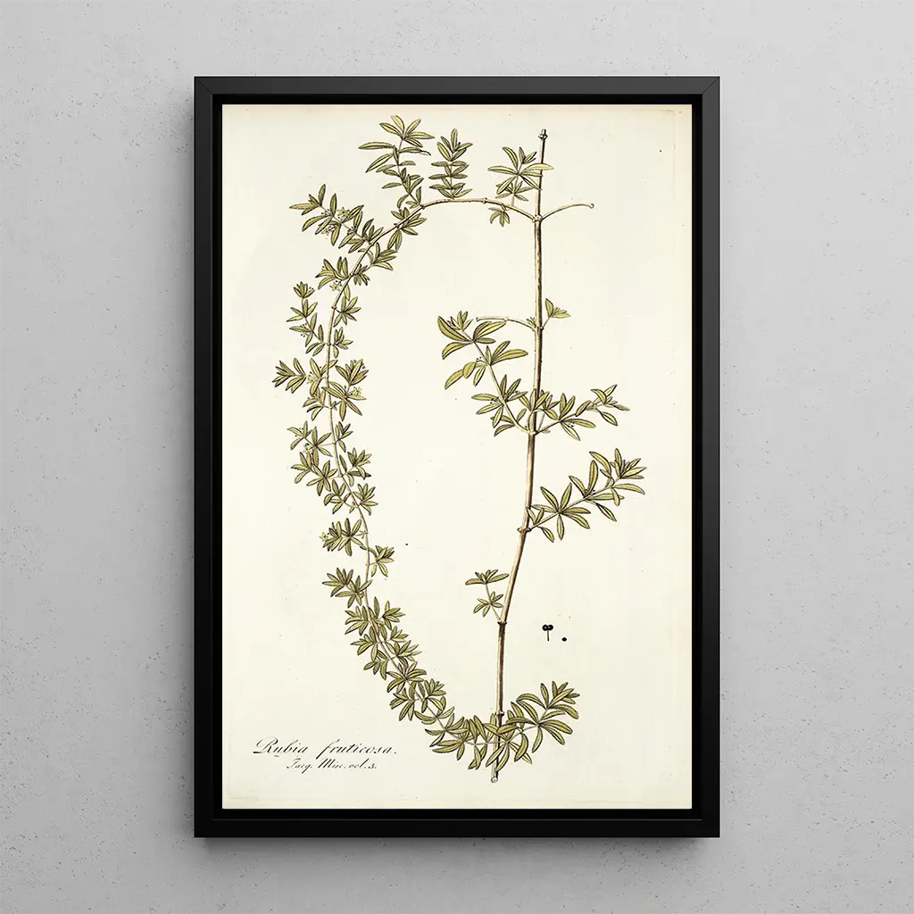 Druk artystyczny Rubia fruticosa, dzieła Nikolausa Josefa Freiherr von Jacquina, przenosi nas w żywy świat botaniczny. Ciepłe, ziemiste odcienie tej rośliny, z jej odcieniami czerwieni i zieleni, odzwierciedlają bogactwo flory. Technika akwareli, używana z finezją, pozwala uchwycić delikatność liści i kwiatów, tworząc uspokajającą i kontemplacyjną atmosferę. Każdy szczegół jest starannie oddany, zachęcając widza do zachwytu nad pięknem natury.