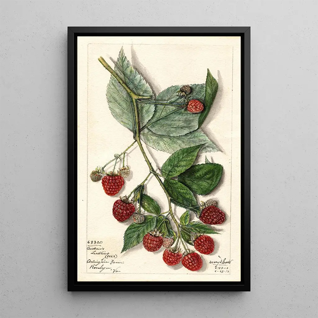 Druk artystyczny Rubus Andrews autorstwa Mary Daisy Arnold przywołuje obraz zanurzenia się w dzikiej naturze, gdzie odcienie zieleni i brązu harmonijnie się przenikają. To dzieło, bogate w szczegóły, oddaje istotę krzewów i liści, tworząc atmosferę jednocześnie pełną życia i spokoju. Technika artysty, łącząca akwarelę i rysunek, pozwala oddać teksturę i głębię roślin, zapewniając wciągające doświadczenie wizualne. Każdy element kompozycji zdaje się opowiadać historię, zachęcając widza do zagubienia się w tym bujnym krajobrazie.