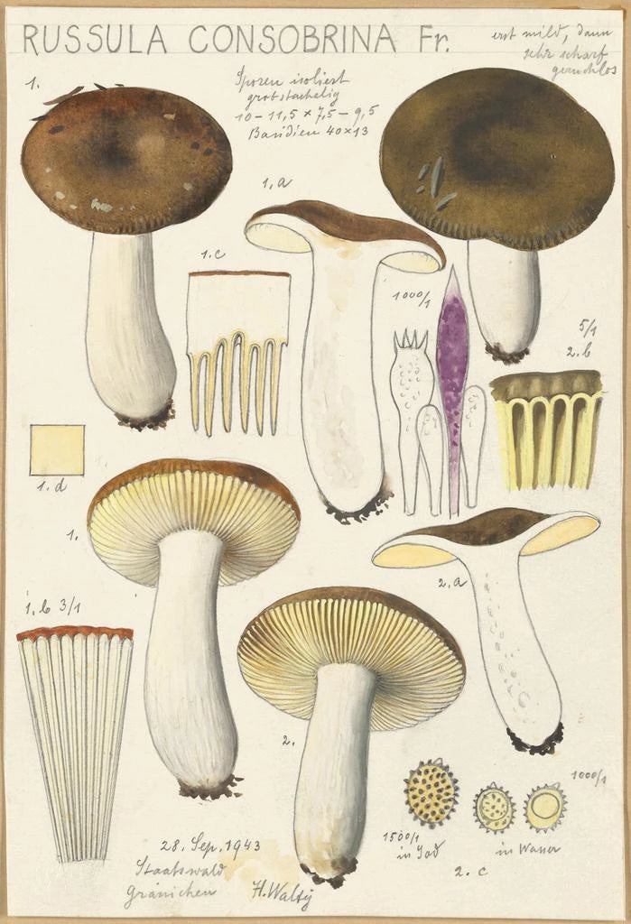 Hans Baldung, znany również jako Hans Baldung Grien, jest jedną z ikon niemieckiego renesansu. Działający na początku XVI wieku, był pod wpływem dzieł Dürera i wypracował unikalny styl, łączący realizm z elementami fantastycznymi. Baldung jest szczególnie ceniony za swoje przedstawienia natury i motywów mitologicznych, które ukazują szczególną wrażliwość na świat naturalny. Jego zdolność do uchwycenia efemerycznej piękności grzybów, jak w przypadku Russula consobrina, świadczy o jego umiejętności łączenia sztuki i obserwacji naukowej, czyniąc go nieodzownym artystą swojego czasu.