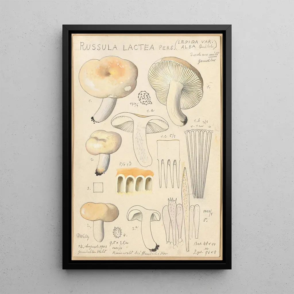 Russula lactea, ikoniczne dzieło Hansa Baldunga, przenosi nas w świat, w którym piękno grzybów jest podkreślane. Obraz wyróżnia się łagodnymi odcieniami i delikatnymi kształtami, tworząc uspokajającą i kontemplacyjną atmosferę. Odmiany bieli i kremu, subtelnie podkreślone akcentami zieleni, przywołują świeżość leśnych zakątków. Technika Baldunga, łącząca precyzję i wrażliwość, pozwala docenić każdy szczegół tego gatunku grzybów, zachęcając widza do wizualnej eksploracji. To dzieło, jednocześnie proste i wyrafinowane, celebruje efemeryczną urodę natury.