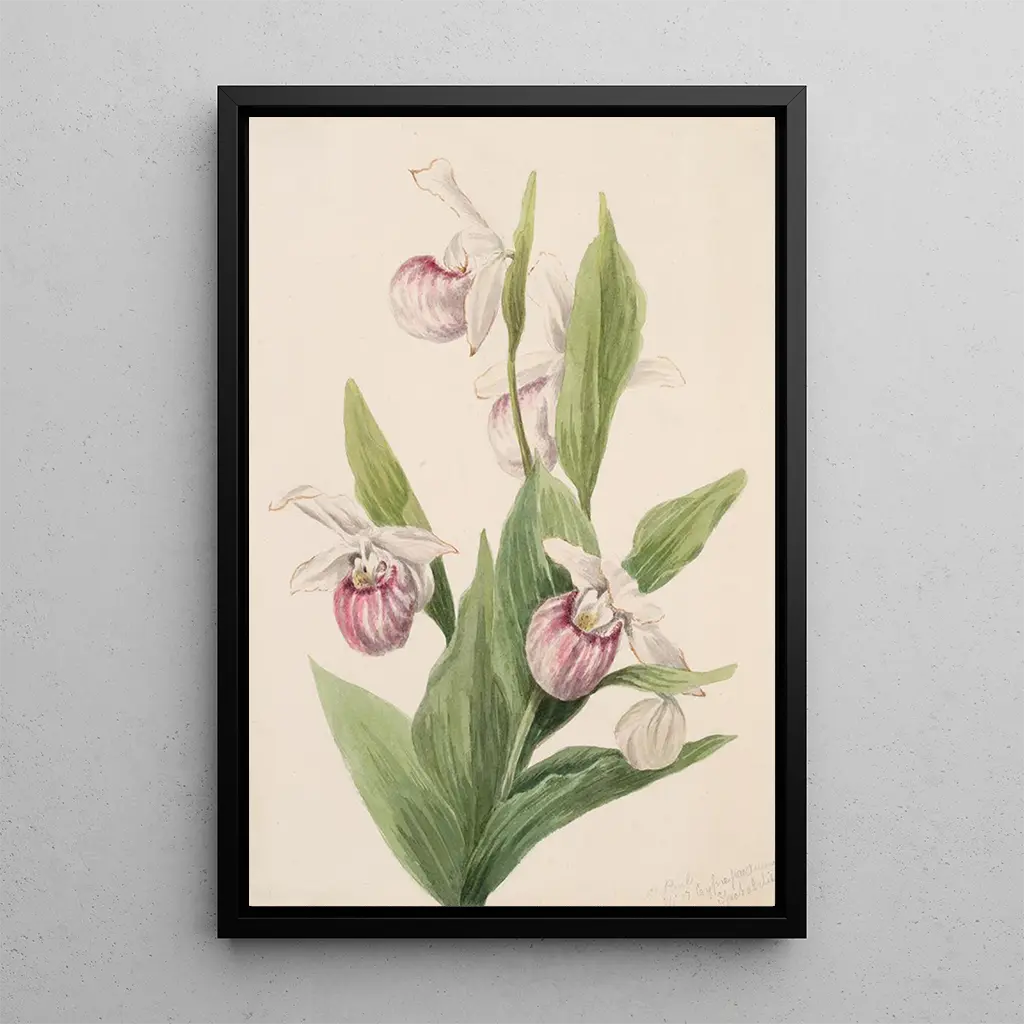Druk artystyczny Sabot de la reine dévoala une composition florale d'une rare élégance. Les teintes vives de jaune et de violet s'entrelacent avec grâce, créant un contraste saisissant qui attire immédiatement le regard. La technique de l’aquarelle, maîtrisée par Mary Vaux Walcott, permet de rendre les textures délicates des pétales et des feuilles, tout en conservant une légèreté aérienne. Cette œuvre évoque la magie des jardins, où chaque fleur raconte une histoire, invitant le spectateur à s'émerveiller devant la beauté éphémère de la nature.