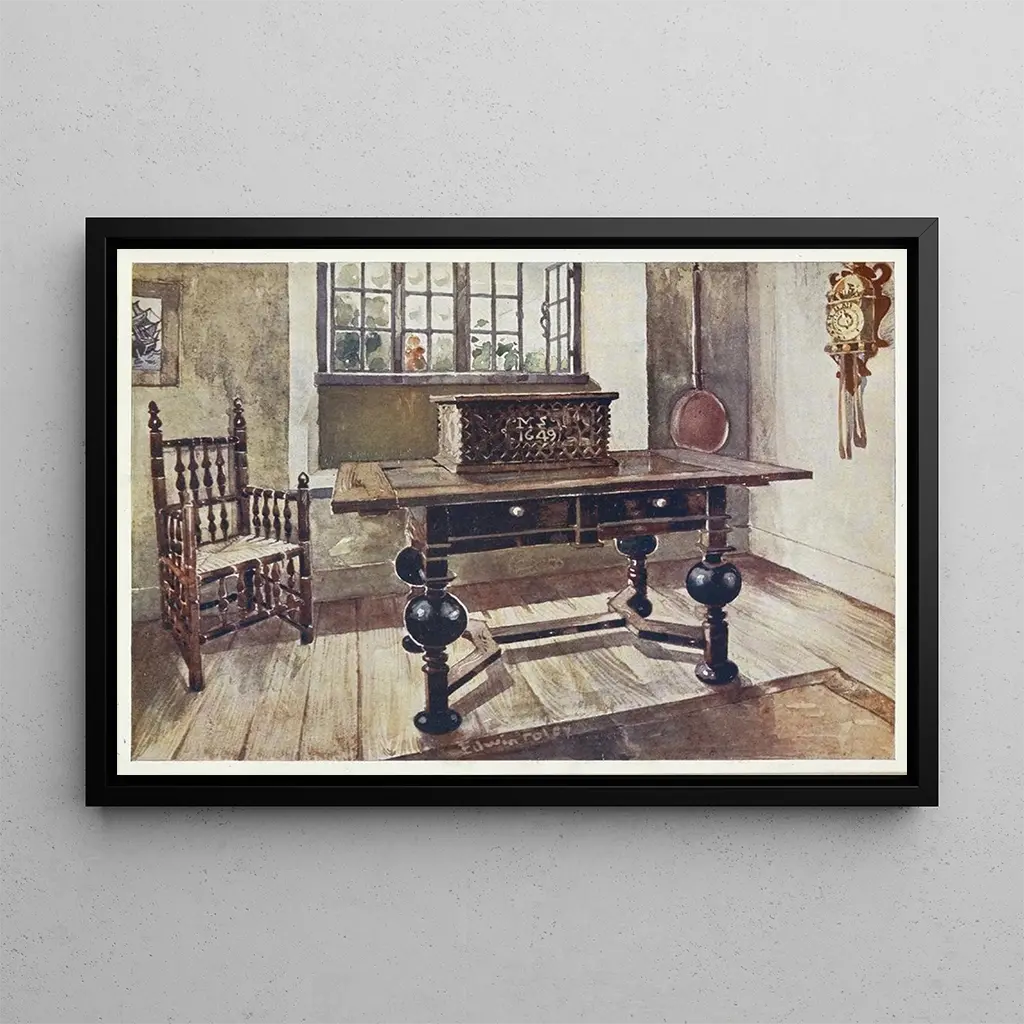 W tej druk artystyczny scenie z Salon wczesnych kolonistów z Wirginii, Edwin Foley przenosi nas do codziennego życia kolonistów z XVIII wieku. Kompozycja ukazuje przytulny pokój, w którym przyciemnione światła tworzą intymną atmosferę. Kolory ziemiste, łączące odcienie brązu i zieleni, odzwierciedlają prostotę i autentyczność tamtej epoki. Technika Foley'a, polegająca na delikatnym pociągnięciu pędzla, ożywia szczegóły, od wyrazistych twarzy po codzienne przedmioty, czyniąc tę scenę zarówno żywą, jak i poruszającą.