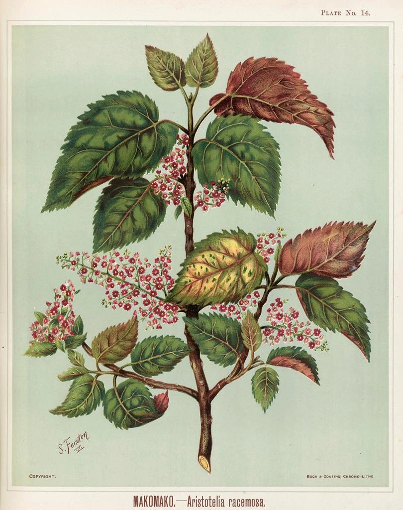 Sarah Featon, néo-zélandańska artystka XIX wieku, jest znana ze swoich botanicznych ilustracji o niezwykłej precyzji. W 'Makomako Aristotelia racemosa' uchwyciła piękno i złożoność tej endemicznej rośliny Nowej Zelandii, znanej również jako 'Māori Makomako'. To dzieło należy do serii plansz prezentujących unikalną florę regionu, świadcząc o rosnącym zainteresowaniu botanika w tamtym okresie. Styl Featon, zarówno szczegółowy, jak i delikatny, pozwala docenić każdą niuans rośliny, oddając hołd naturalnemu bogactwu jej kraju. Dziś to dzieło może dodać odrobinę natury i świeżości do każdego wnętrza, zachęcając do spokojnej kontemplacji. Druk artystyczny tego dzieła można odkryć na Artem Legrand.