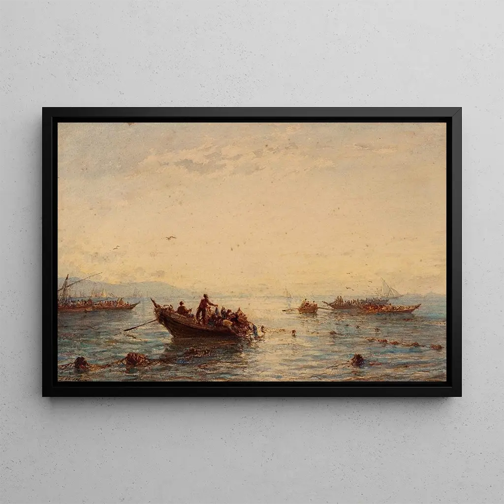 Source: Sausset, la pêche au thon : une scène maritime empreinte de sérénité La reproduction Sausset, la pêche au thon, nous transporte sur les rivages ensoleillés de la Méditerranée, où la mer et le ciel se confondent dans une palette de bleus et de blancs. Les bateaux de pêche, délicatement peints, semblent danser sur les vagues, tandis que les pêcheurs s'affairent avec une grâce naturelle. La technique impressionniste de Félix Ziem, avec ses coups de pinceau fluides, crée une atmosphère de tranquillité et d'harmonie, invitant le spectateur à ressentir la douceur de vivre au bord de l'eau. Félix Ziem : un maître de la lumière et de la couleur au XIXe siècle Félix Ziem, artiste français du XIXe siècle, est reconnu pour ses paysages marins et ses vues de Venise. Influencé par le mouvement impressionniste, il a su capturer la lumière et l'atmosphère de ses sujets avec une grande sensibilité. Sa carrière, marquée par des voyages à travers l'Europe et au-delà, lui a permis d'explorer diverses techniques et styles. La reproduction de Sausset, la pêche au thon, témoigne de son talent à immortaliser des moments simples de la vie quotidienne, tout en célébrant la beauté des paysages marins. Une acquisition décorative aux multiples atouts Cette reproduction du tableau Sausset, la pêche au thon, est une pièce décorative qui s'intègre parfaitement dans n'importe quel intérieur, qu'il soit moderne ou traditionnel. Son attrait esthétique et sa qualité d'impression en font un choix idéal pour embellir un salon, un bureau ou une chambre. En apportant une touche de sérénité et d'évasion, cette œuvre invite à la contemplation et à l'appréciation de la beauté des scènes de la vie maritime, tout en enrichissant votre espace de vie d'une atmosphère apaisante.