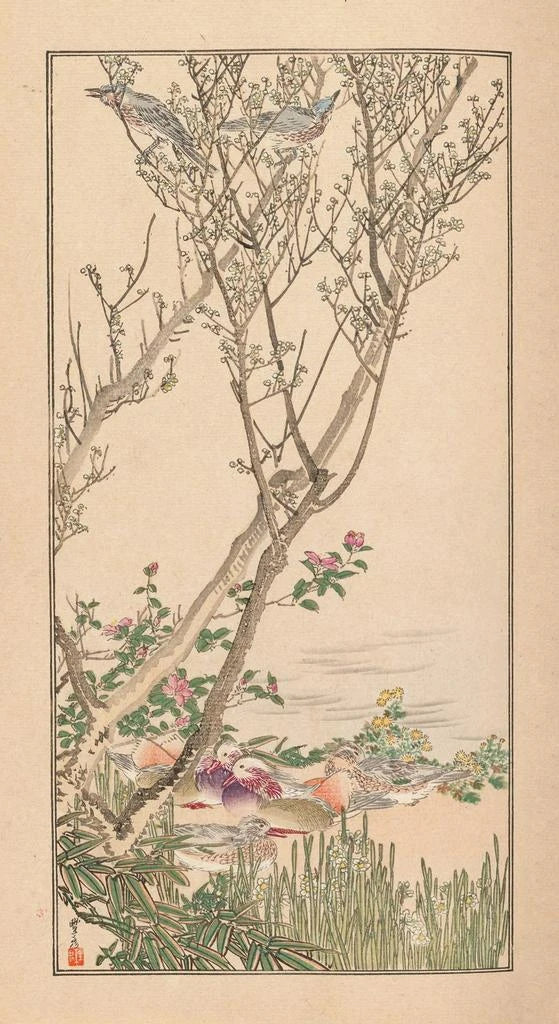 Druk artystyczny Shubi gakan Pl07 zaprasza do zanurzenia się w pełnym życia świecie, gdzie natura rozkwita w jaskrawych kolorach. To dzieło, bogate w odcienie, przedstawia harmonijną kompozycję, w której każdy element zdaje się tańczyć na wietrze. Żywe barwy i płynne kształty tworzą radosną i uspokajającą atmosferę, przywołując efemeryczną piękność sezonów. Użyta technika, prawdopodobnie oparta na tuszu i naturalnych pigmentach, nadaje dziełu głębię i teksturę, które przyciągają wzrok. Całość emanuje uczuciem spokoju, jakby przenosiła nas do bujnego ogrodu, gdzie każdy szczegół opowiada historię.