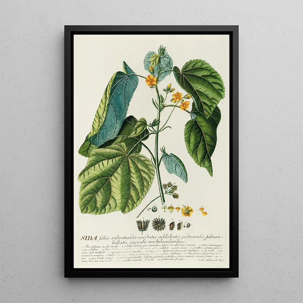 Druk artystyczny Sida, dzieło Georga Dionysiusa Ehreta, przenosi nas w świat fascynujących kolorów i tekstur. Ta reprodukcja podkreśla roślinę Sida, znaną z delikatnych kwiatów i żywych liści. Odmiany żółci i zieleni splatają się harmonijnie, tworząc atmosferę zarówno uspokajającą, jak i dynamiczną. Technika Ehreta, łącząca precyzję i wrażliwość, pozwala odczuć lekkość płatków i wytrzymałość łodyg. To dzieło jest prawdziwą hołd dla natury, zachęcając do obserwacji i zachwytu.