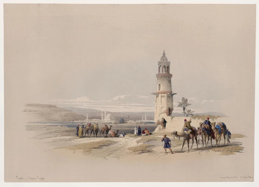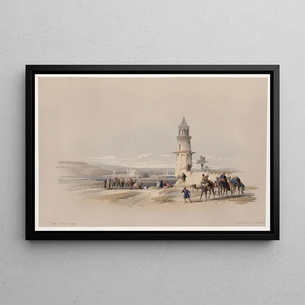 "Siout Asyut Haute-Égypte" to ikoniczne dzieło Davida Robertsa, które przenosi nas w serce egipskich krajobrazów. Z paletą ciepłych kolorów, od ochry po głębokie błękity, Roberts uchwycił majestat zabytków i krajobrazów pustynnych. Technika akwareli, używana z finezją, pozwala oddać olśniewające światło egipskiego słońca, tworząc atmosferę jednocześnie mistyczną i realistyczną. Każdy szczegół, od sylwetek piramid po odcienie wydm, przywołuje starożytny świat, bogaty w historię i kulturę, zachęcając widza do odkrywania cudów Egiptu.