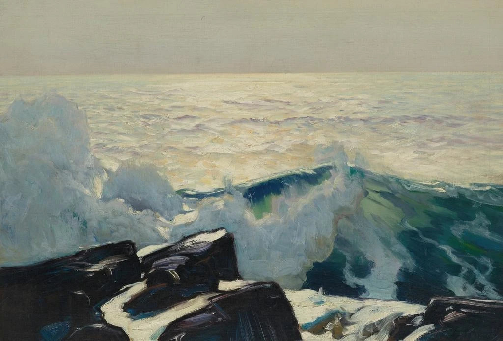 Frederick Judd Waugh, aktywny na początku XX wieku, słynie z uderzających przedstawień morskich. Wychowany w środowisku artystycznym, był pod wpływem wybrzeży Nowej Anglii, które ukształtowały jego charakterystyczny styl. Waugh potrafił uchwycić piękno oceanów, jednocześnie eksplorując efekty światła na wodzie i skałach. Jego prace często kojarzone są z impresjonizmem, ale wprowadzał także elementy realizmu, co pozwoliło mu wyróżnić się w świecie sztuki morskiej. Jego dziedzictwo trwa poprzez jego dzieła, które nadal inspirują miłośników sztuki.