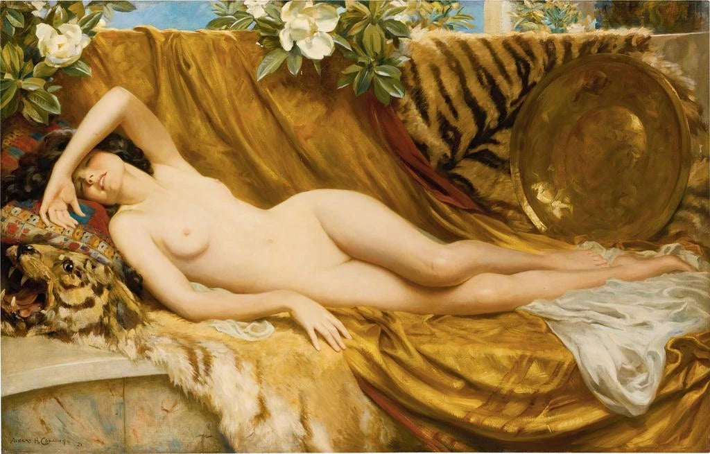 Albert Henry Collings, aktywny na początku XX wieku, jest ceniony za swój wyjątkowy talent w przedstawianiu zwierząt. Pod wpływem ruchów naturalistycznych swojego czasu, potrafił uchwycić istotę swoich tematów z niezwykłą precyzją. Collings poświęcił swoją karierę badaniu zwierząt, czerpiąc inspirację z natury i podróży, aby wzbogacić swoje dzieło. Jego prace, choć mniej znane niż niektórych współczesnych, pozostawiły trwały ślad w świecie sztuki zwierzęcej. La Peau de Tigre doskonale ilustruje jego umiejętność łączenia techniki z emocjami, czyniąc go niekwestionowanym artystą swojego czasu.
