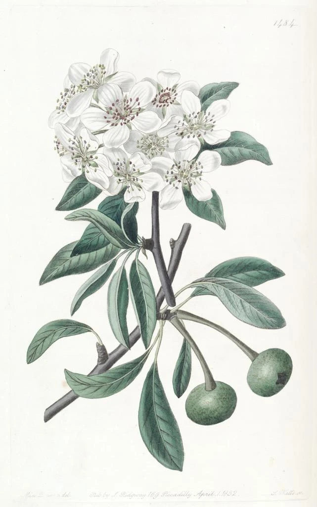 Sydenham Edwards, illustrateur botanique du début du XIXe siècle, a marqué son époque par ses œuvres d'une grande précision et d'une esthétique raffinée. Influencé par les avancées scientifiques de son temps, il a su allier art et science pour créer des illustrations qui sont devenues des références dans le domaine. Ses collaborations avec des botanistes de renom ont enrichi son travail, lui permettant de représenter la flore avec une exactitude remarquable. Le Poirier des Neiges est un exemple parfait de son talent, alliant beauté visuelle et rigueur scientifique, témoignant de l'importance de la botanique dans l'art.