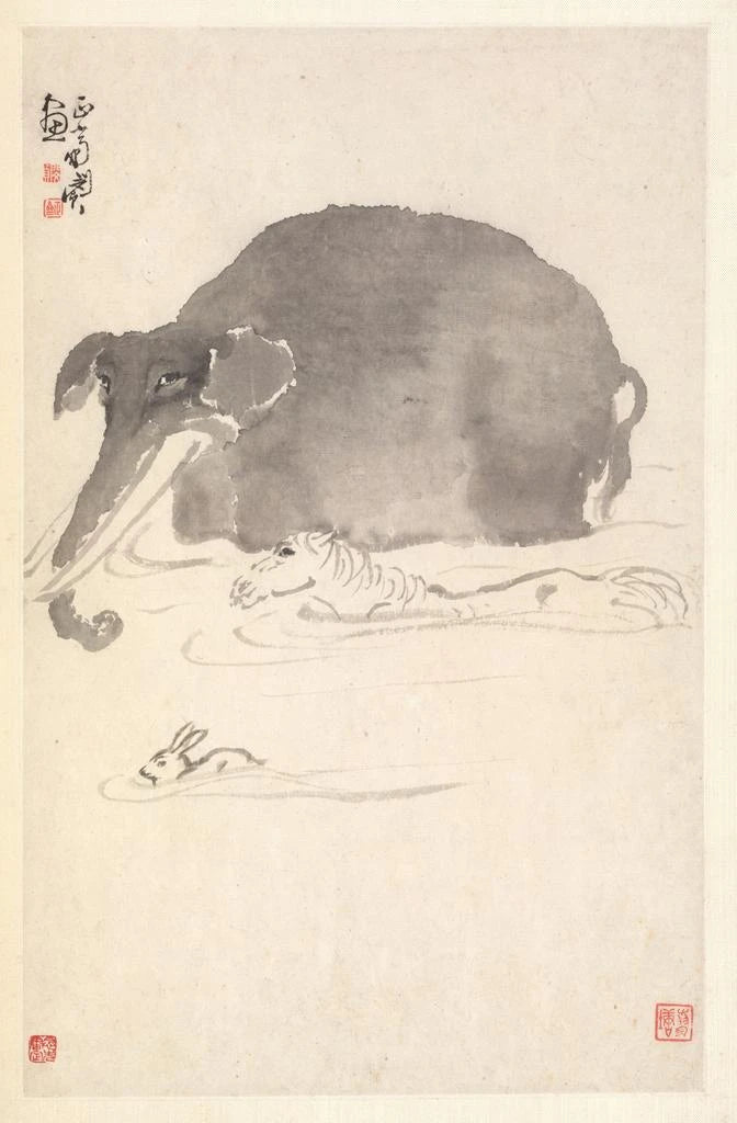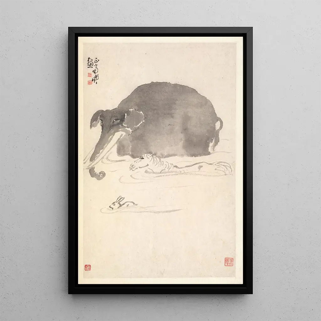 Druk artystyczny | Słoń, koń i zając - Min Zhen