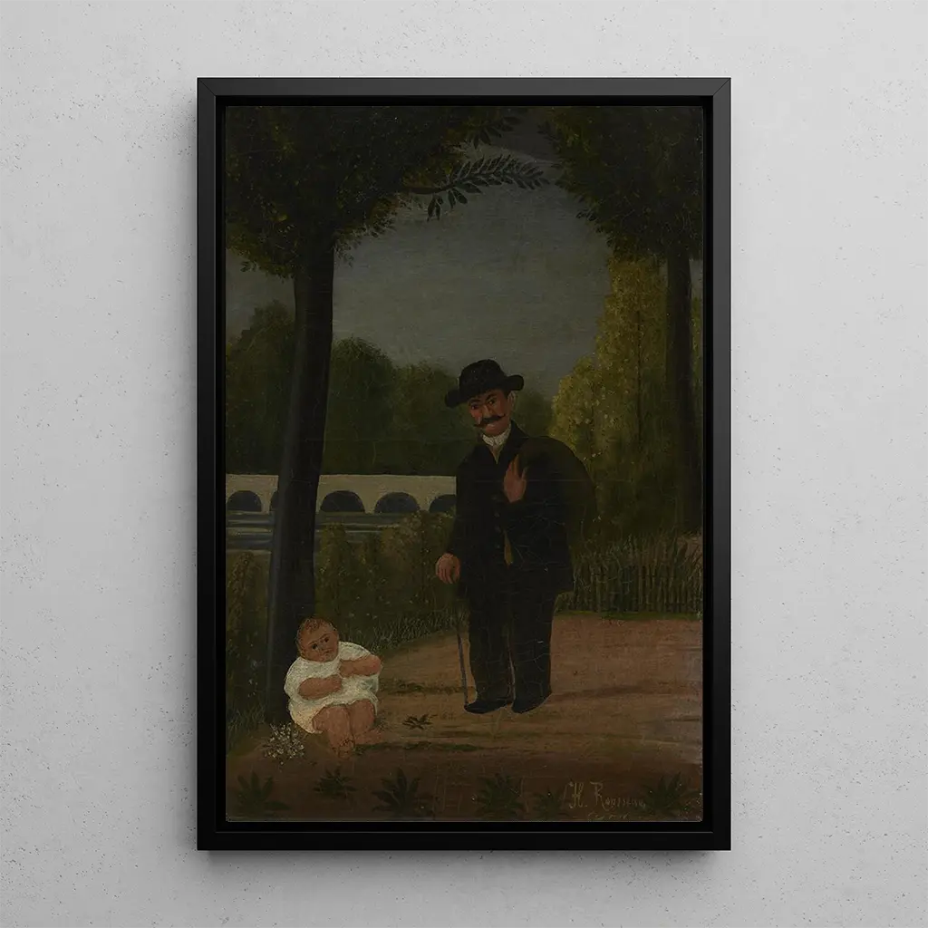 Henri Rousseau, samouk i ikona sztuki naiwej, zdołał narzucić swój unikalny styl pod koniec XIX wieku. Urodzony w Laval, zaczął poważnie malować po przejściu na emeryturę z pracy celników. Pod wpływem salonów artystycznych i wystaw swojej epoki, Rousseau rozwinął język wizualny łączący realizm z wyobraźnią. Jego dzieła, często inspirowane naturą i scenami z codziennego życia, były z początku sceptycznie przyjmowane przez krytyków. Jednak "Promenier i dziecko" doskonale ilustruje jego zdolność do uchwycenia prostych momentów z głębią emocjonalną, czyniąc go prekursorem sztuki nowoczesnej.
