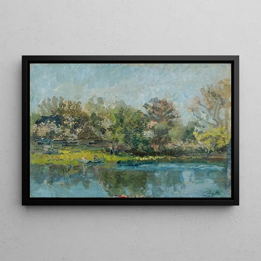 Druk artystyczny Vieille Danube autorstwa Wilhelma Leglera przywołuje scenę bucoliczną, w której natura i woda spotykają się w doskonałej harmonii. Błyszczące refleksy na powierzchni rzeki, odcienie zieleni drzew oraz niebo wypełnione chmurami tworzą spokojną i harmonijną atmosferę. Technika Leglera, charakteryzująca się delikatnymi pociągnięciami pędzla i łagodną paletą kolorów, zachęca widza do zanurzenia się w tym idyllicznym krajobrazie. Każdy szczegół, od ruchu wody po cienie liści, przyczynia się do zrównoważonej kompozycji, oferując prawdziwe zaproszenie do kontemplacji.