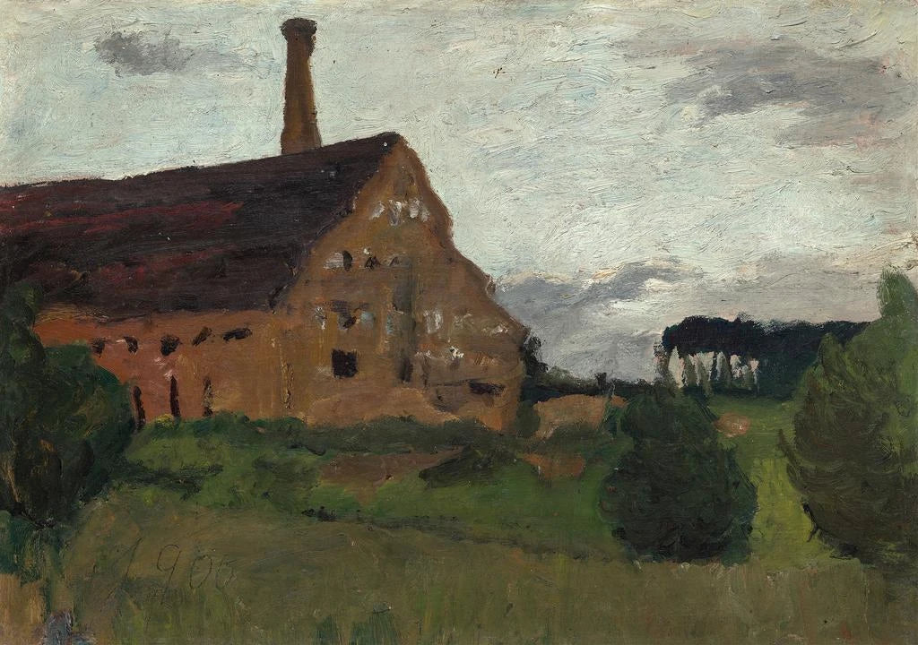 La toile "Vieille usine" de Paula Modersohn-Becker évoque une atmosphère mélancolique, où les vestiges d'une époque révolue se mêlent à la nature environnante. Les couleurs terreuses et les nuances de gris dominent, créant un contraste saisissant avec les touches de vert qui rappellent la vie qui reprend ses droits. La technique de l'artiste, caractérisée par des coups de pinceau expressifs, confère à l'œuvre une profondeur émotionnelle, invitant le spectateur à réfléchir sur le passage du temps et l'impact de l'industrialisation sur le paysage. Ce tableau, à la fois simple et poignant, nous plonge dans une contemplation des souvenirs d'un monde en mutation.
