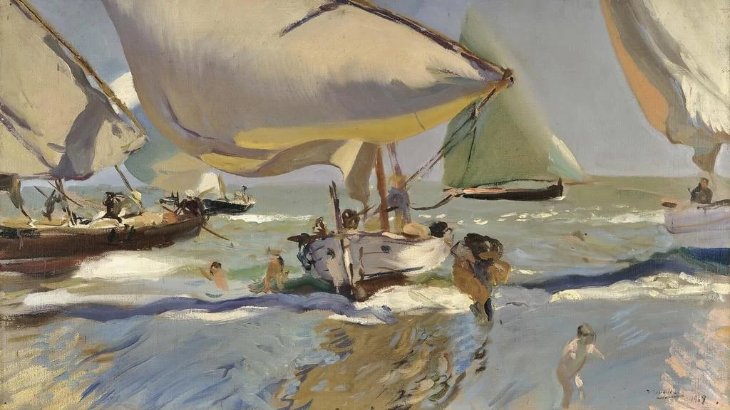 Statki na brzegu - Joaquín Sorolla