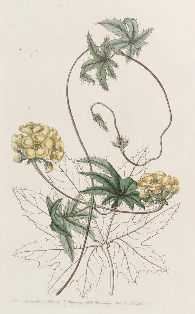 Sydenham Edwards, ilustrator botaniczny z początku XIX wieku, zaznaczył swoją epokę szczegółowymi i naukowymi pracami. Jego ilustracje, w tym "Stigmaphyllon à feuilles de Jatropha", są owocem wnikliwej obserwacji i pasji do botaniki. Pod wpływem postępów nauki i eksploracji botanicznych, Edwards umiał połączyć sztukę i naukę, czyniąc swoje dzieła nie tylko estetycznymi, ale także edukacyjnymi. Jego praca przyczyniła się do lepszego zrozumienia egzotycznych roślin i wzbogacenia wiedzy botanicznej jego czasów.