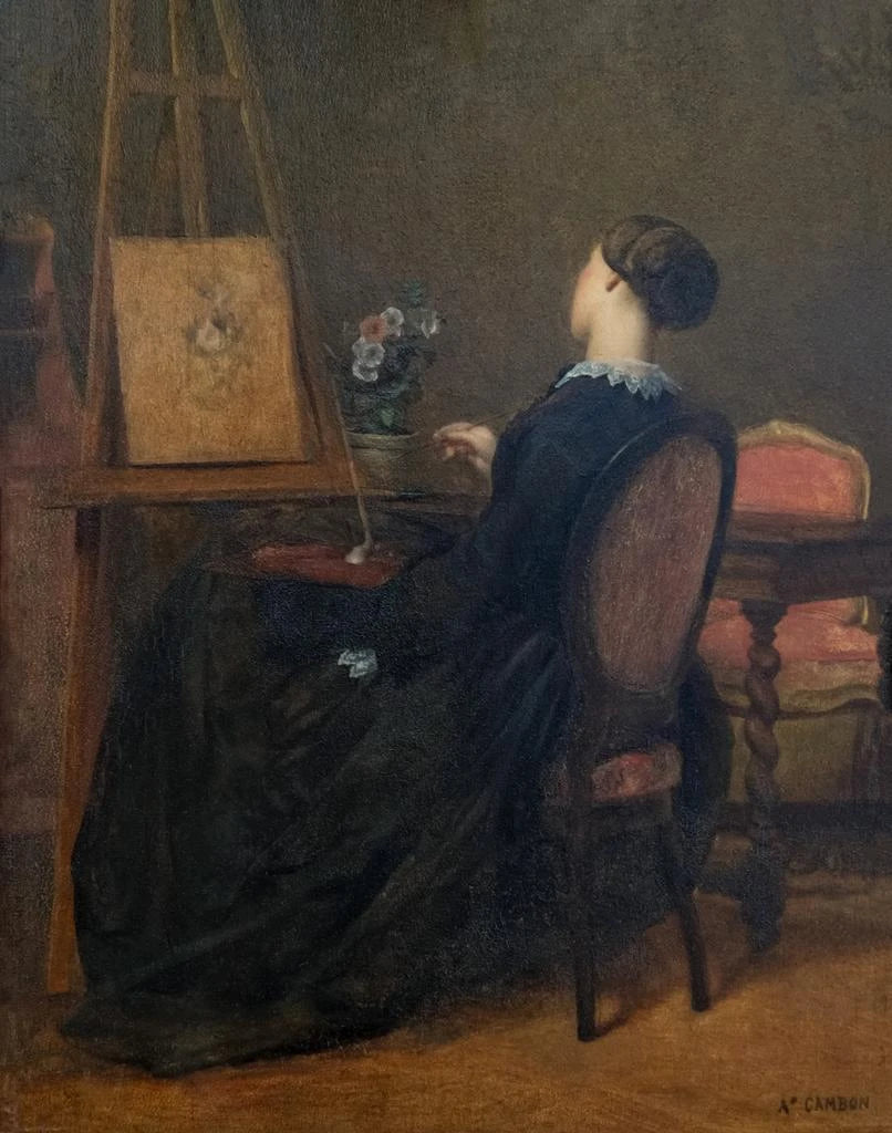 L'œuvre se distingue par son approche unique du sujet floral. Cambon, avec une finesse remarquable, joue sur les contrastes de lumière et d'ombre, créant ainsi une atmosphère presque onirique. Les fleurs, bien que représentées de manière réaliste, semblent presque surréalistes, comme si elles prenaient vie sous nos yeux. Chaque couleur est choisie avec soin, évoquant des émotions et des sensations qui transcendent le simple visuel. La composition, à la fois harmonieuse et dynamique, attire le spectateur dans un dialogue silencieux avec la nature. Cambon parvient à transformer une simple étude en une véritable ode à la floraison, où chaque élément contribue à une symphonie visuelle d'une grande élégance.