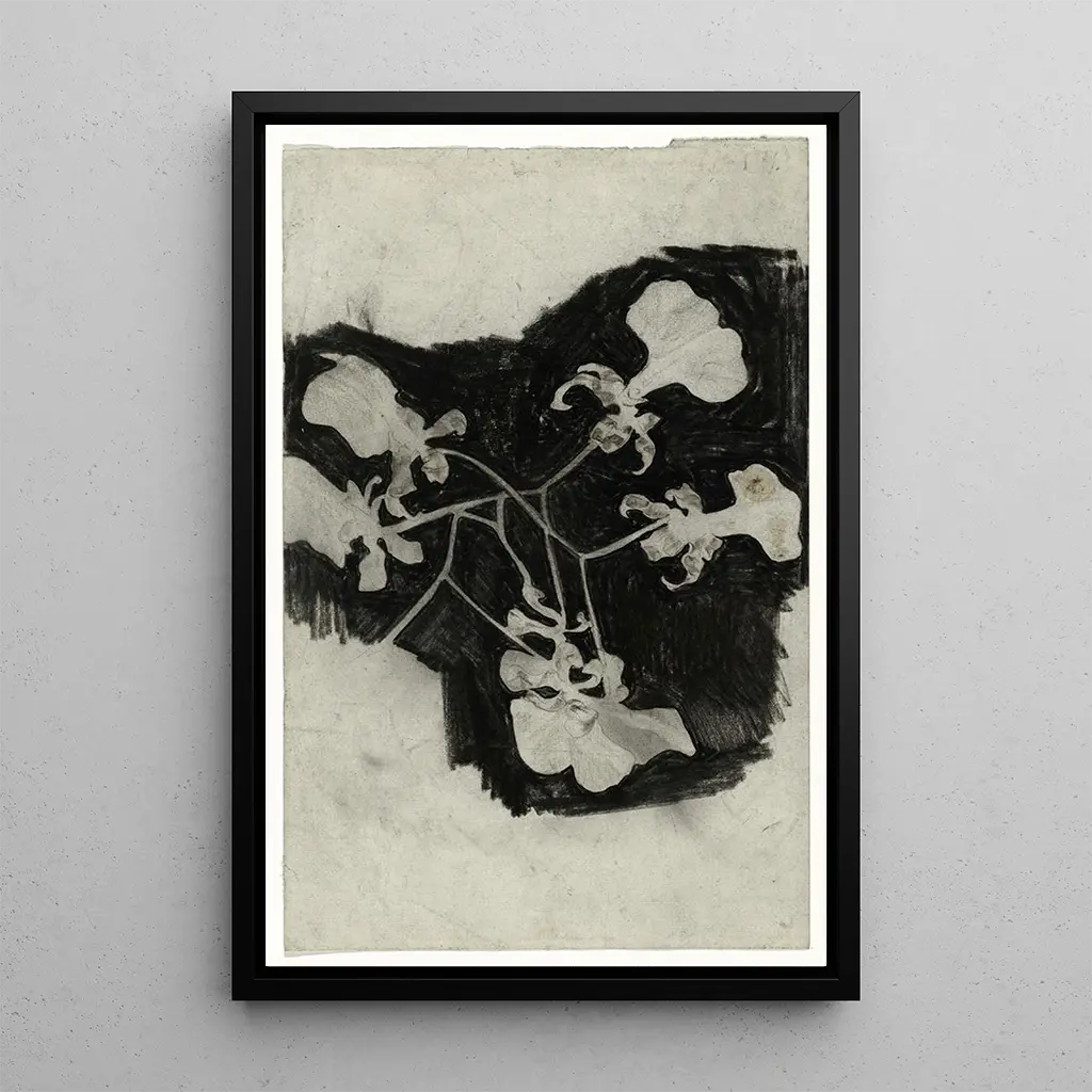 La druk artystyczny de l'œuvre "Étude de fleur III" de Carel Adolph Lion Cachet nous transporte dans un monde où chaque détail floral est mis en valeur avec une précision remarquable. Les nuances subtiles de violet et de bleu se mêlent harmonieusement, créant une composition à la fois douce et captivante. La technique de l'artiste, qui combine finesse du pinceau et éclat des couleurs, donne vie à chaque pétale, chaque feuille, évoquant une sensation de légèreté et de grâce. Cette toile invite à une contemplation attentive, révélant la beauté cachée des fleurs, souvent négligées dans le quotidien.
