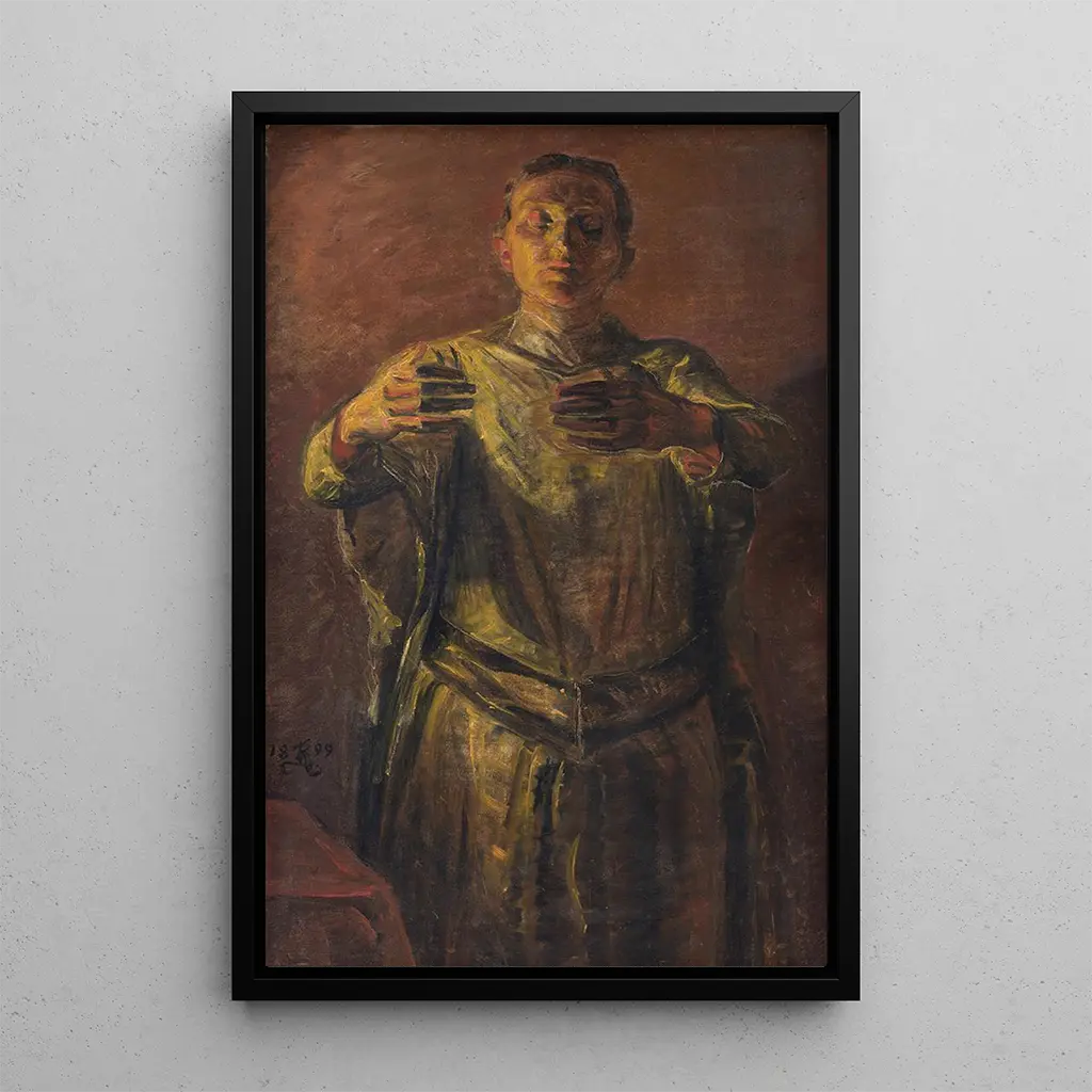 Studium Lady Macbeth: eksploracja ludzkich pasji Druk artystyczny "Studium Lady Macbeth" autorstwa Kristiana Zahrtmanna jest uderzającym przedstawieniem emocjonalnej intensywności, która zamieszkuje postać Szekspira. Obraz, bogaty w ciemne kolory i dramatyczne niuanse, wywołuje atmosferę napięcia i tajemnicy. Zahrtmann używa technik malarstwa olejnego, aby stworzyć tekstury ożywiające wyraz zmartwionej Lady Macbeth. Cienie i światła zręcznie się przenikają, podkreślając wewnętrzny konflikt bohaterki, podczas gdy rozmyte tło zdaje się odzwierciedlać jej zaniepokojony umysł. To dzieło zachęca do głębokiej kontemplacji ludzkich pasji i ich konsekwencji. Kristian Zahrtmann: mistrz nordyckiego symbolizmu Kristian Zahrtmann, duński malarz XIX wieku, jest znany ze swojego unikalnego stylu łączącego symbolizm z romantyczną wrażliwością. Pod wpływem wielkich mistrzów europejskiego malarstwa i literatury, Zahrtmann potrafił uchwycić momenty intensywnych emocji w swoich dziełach. Jego okres twórczości obejmuje głównie lata 1880–1900, podczas których eksplorował tematy związane z mitologią, literaturą i psychologią ludzką. "Studium Lady Macbeth" wpisuje się w tę linię, świadcząc o znaczeniu literatury w jego twórczości i o jego nowatorskim podejściu do przedstawiania postaci kobiecych. Dekoracyjna reprodukcja o wielu zaletach Reprodukcja "Studium Lady Macbeth" to element dekoracyjny, który wzbogaci każde wnętrze, niezależnie od tego, czy jest to salon, biuro czy sypialnia. Jakość druku i wierne odwzorowanie kolorów czynią go idealnym wyborem dla tych, którzy chcą dodać odrobinę elegancji i głębi swojemu wnętrzu. Dzięki silnemu walorowi estetycznemu, ten obraz przyciąga wzrok i wywołuje rozmowy, jednocześnie skłaniając do refleksji nad uniwersalnymi tematami ambicji i tragedii. Inwestycja w ten druk artystyczny to nie tylko ozdoba przestrzeni, ale także zaproszenie do rozmyślań nad ludzkimi pasjami.