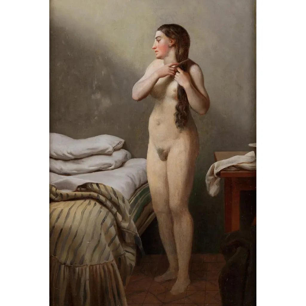 Druk artystyczny "Studium kobiety" autorstwa Amalii Lindegren to uderzająca prezentacja gracji i elegancji kobiecej. Kompozycja, starannie wyważona, podkreśla delikatne krzywizny modelki, podczas gdy łagodne, pastelowe kolory wywołują atmosferę spokoju. Lindegren, korzystając z technik malarstwa olejnego, potrafi uchwycić światło w sposób ożywiający jej temat. Każdy szczegół, od rysów twarzy po fałdy ubrania, jest opracowany z precyzją, świadczącą o jej umiejętnościach. To dzieło zachęca do głębokiej kontemplacji, ukazując ponadczasowe piękno kobiecego ciała.